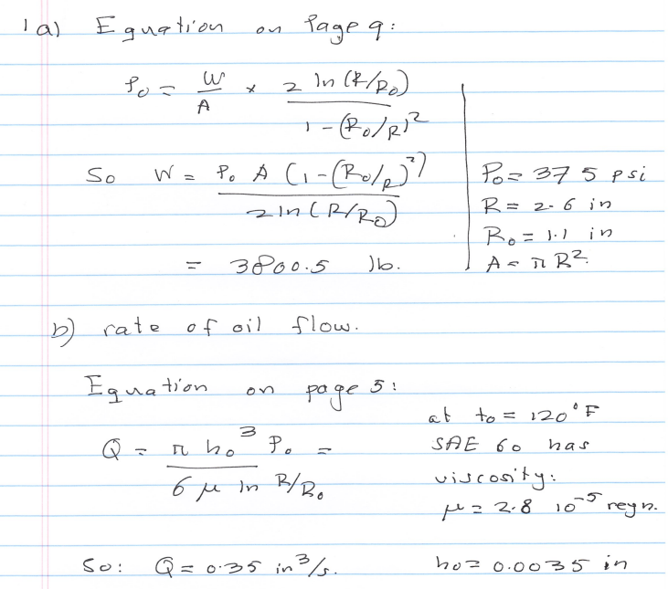 A hydrostatic step bearing has the following characteristics: Shaf...