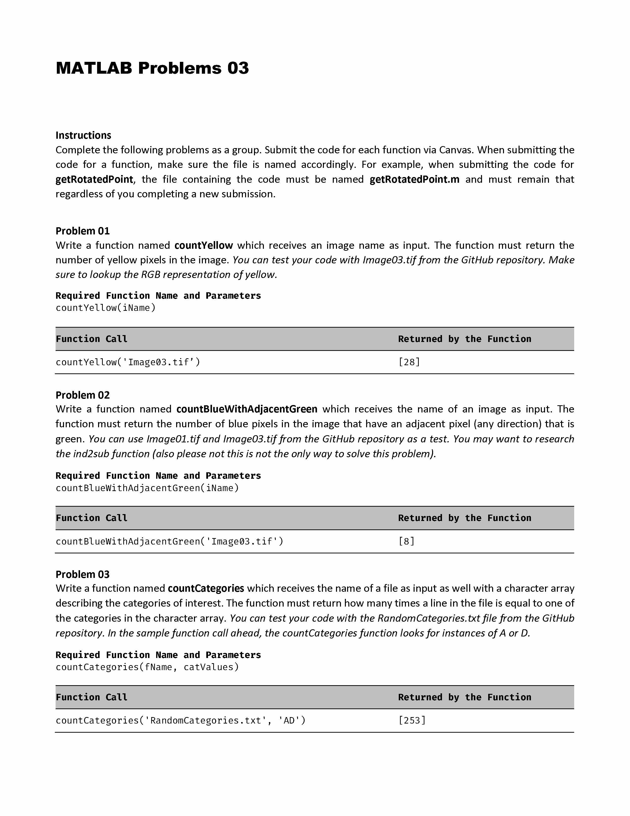 MATLAB Problems 03 Instructions Complete the following problems a...