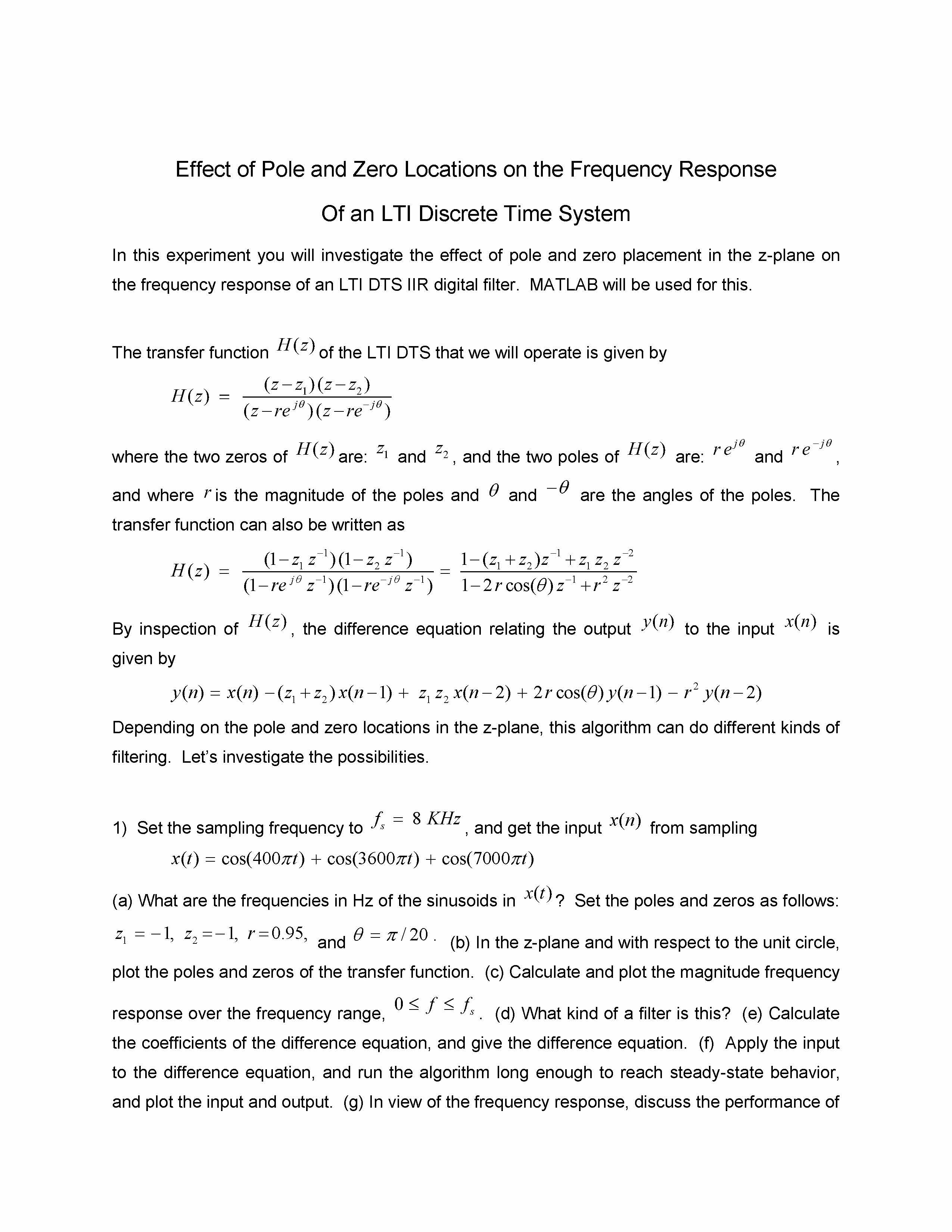 Effect of Pole and Zero Locations on the Frequency Response Of an...