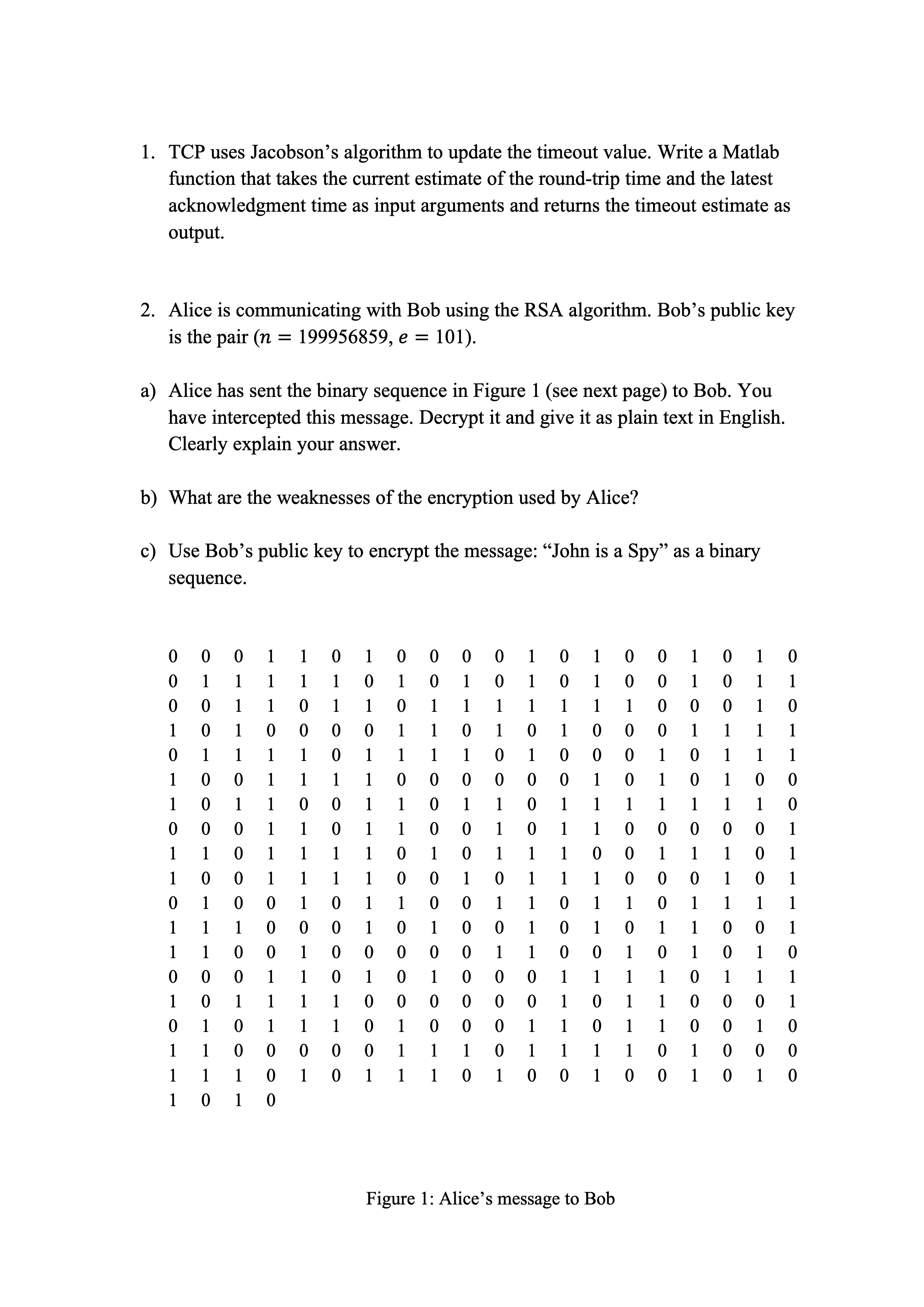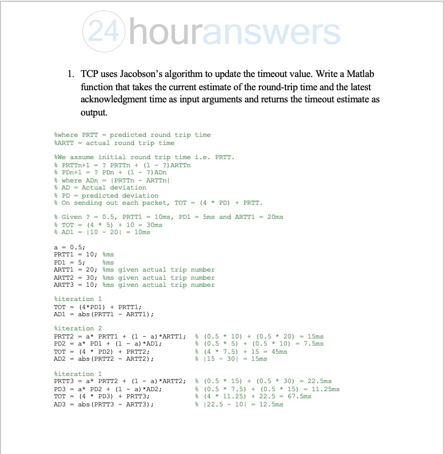 1. TCP uses Jacobson’s algorithm to update the timeout value. Wri...