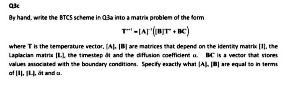 Q3c By hand, write the BTCS scheme in Q3a into a matrix problem of...