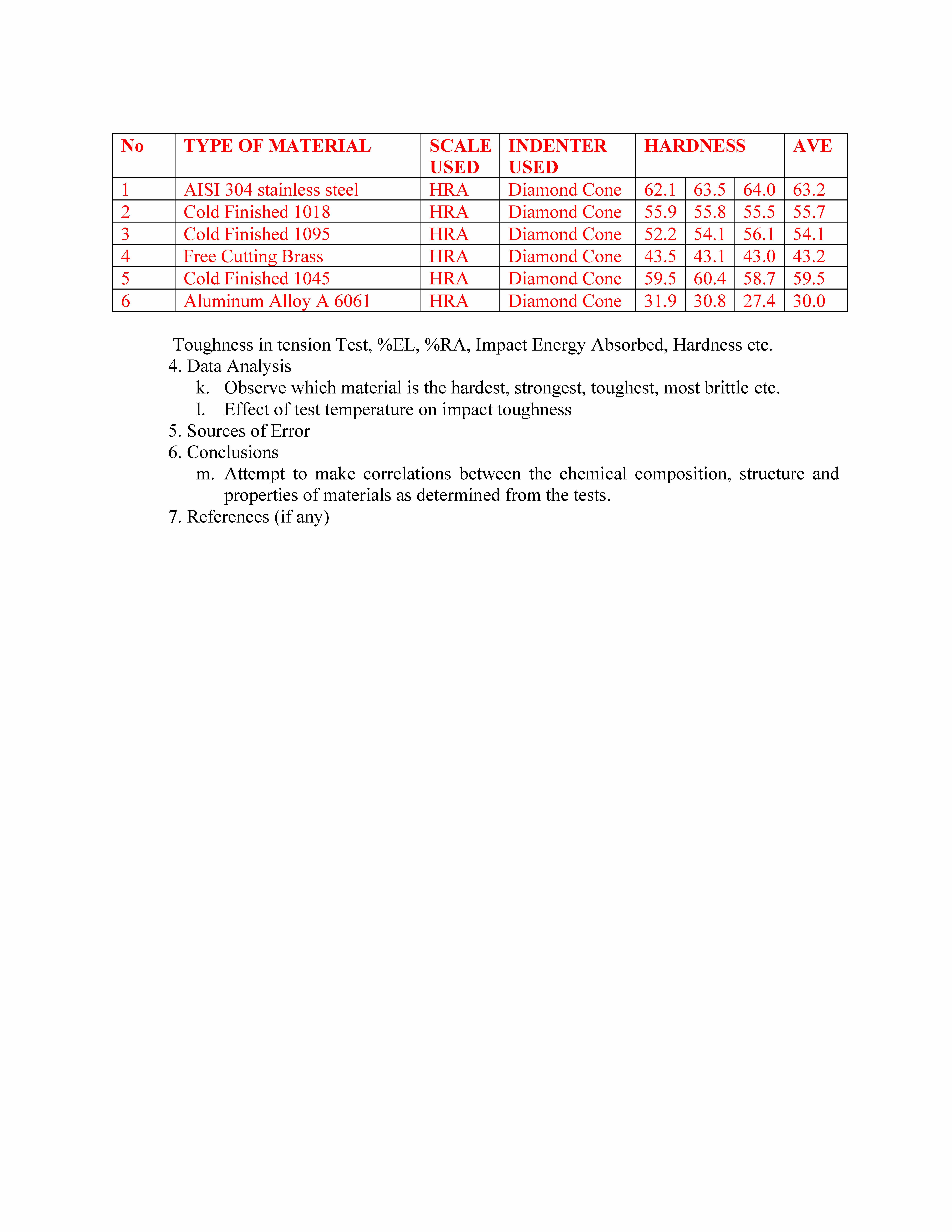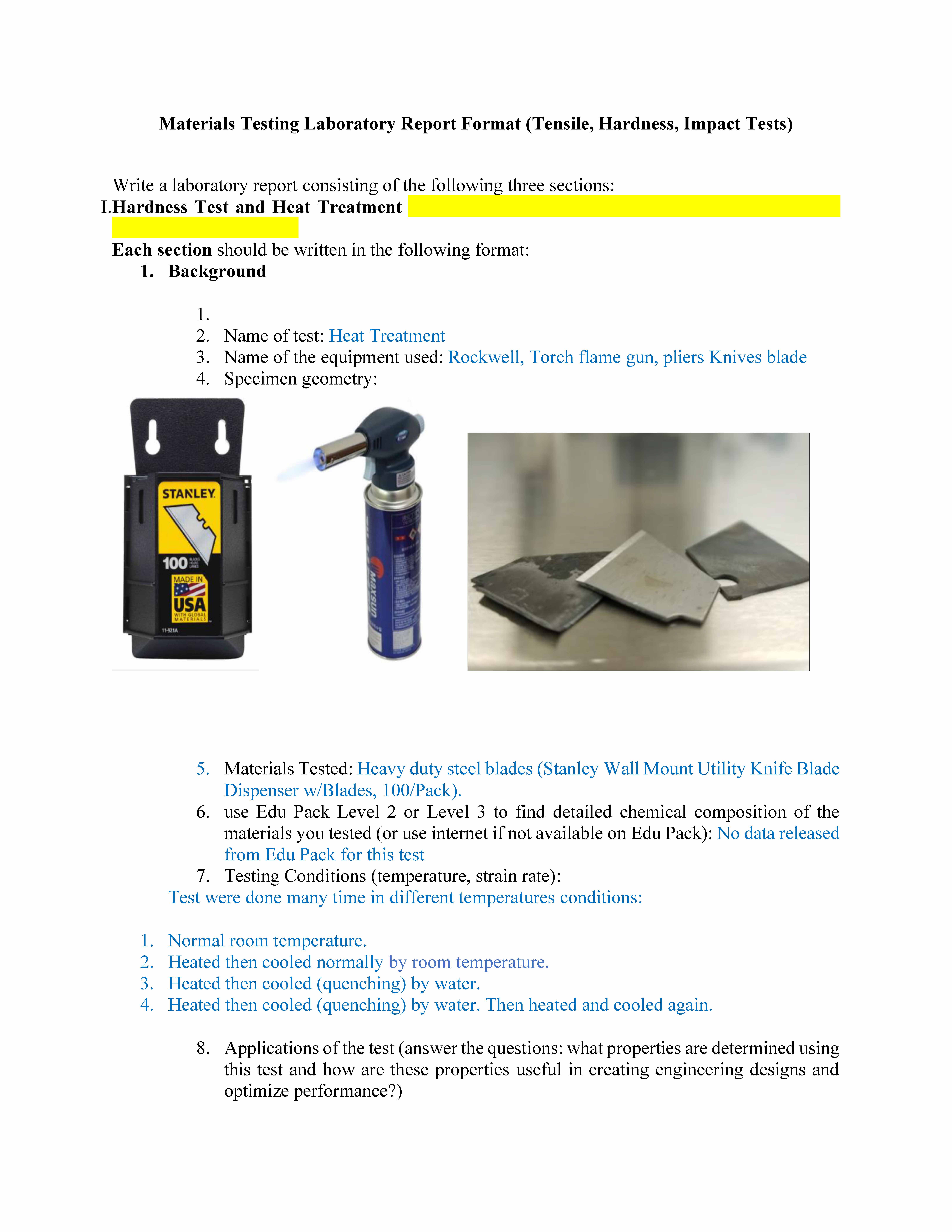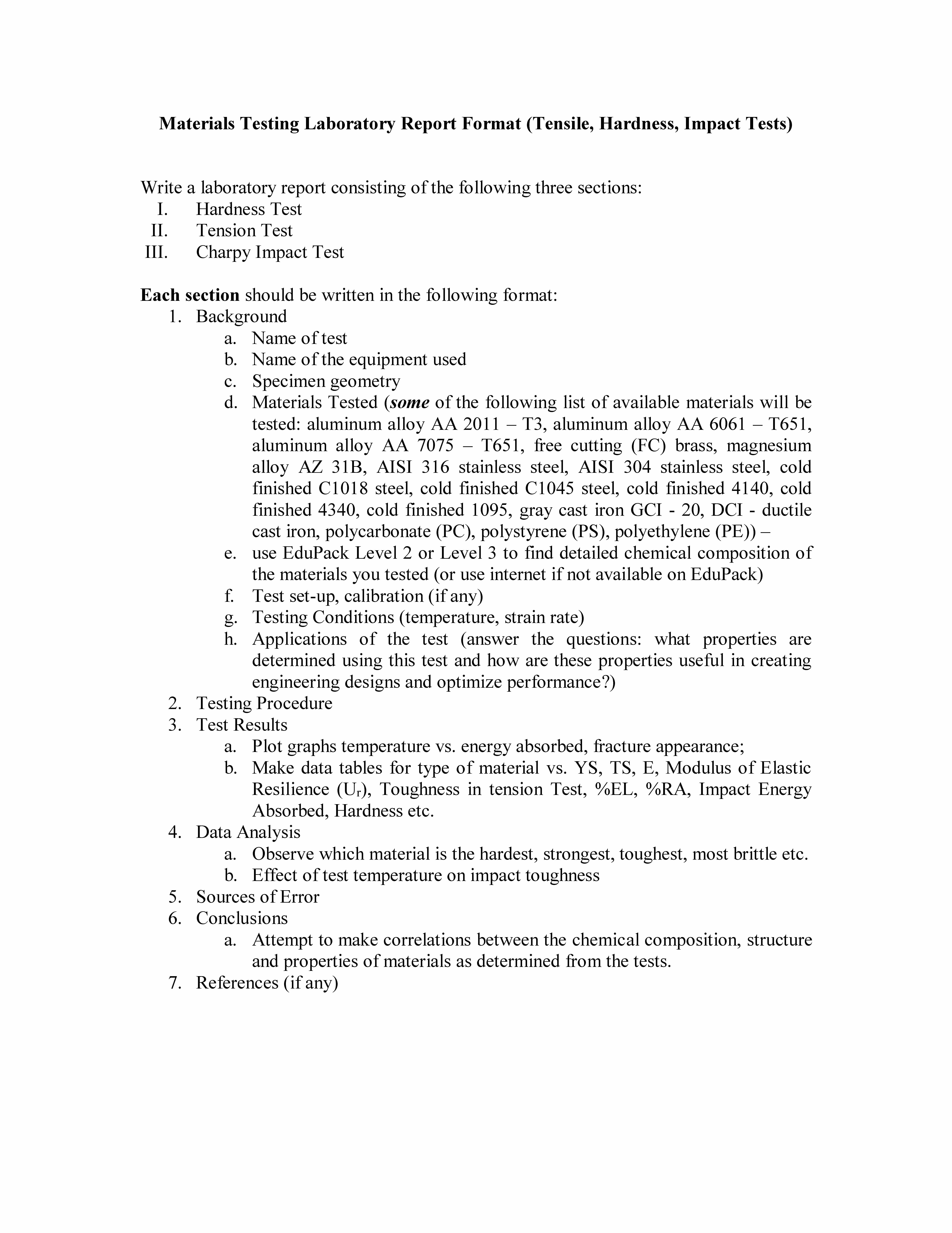 Materials Testing Laboratory Report Format (Tensile, Hardness, Impa...