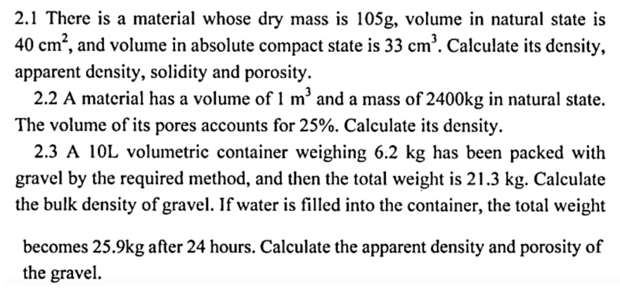 2.1 There is a material whose dry mass is 105g, volume in natural s...