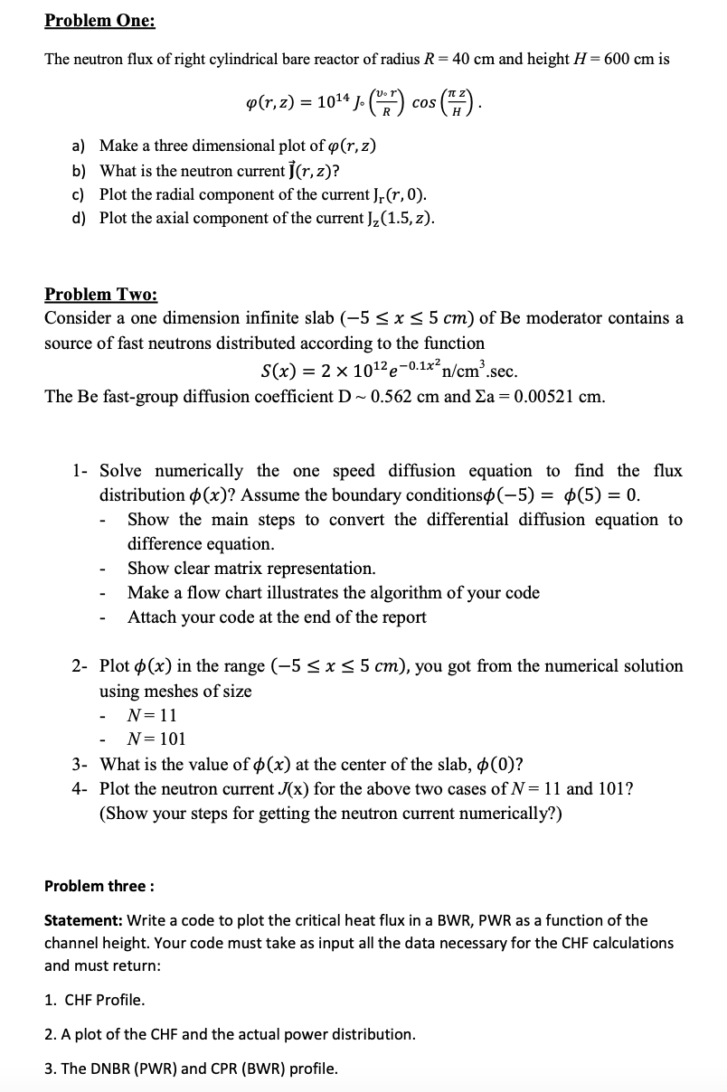 Problem One: The neutron flux of right cylindrical bare reactor of...