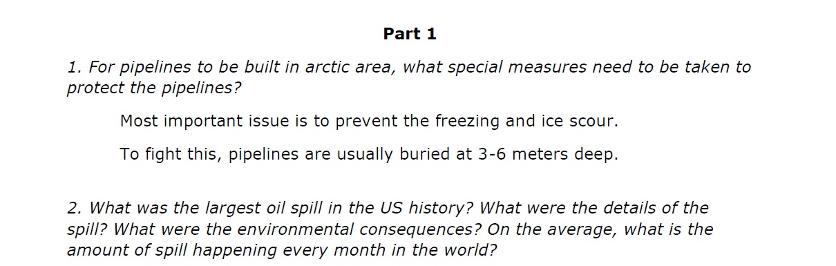 Part 1 1. For pipelines to be built in arctic area, what special m...