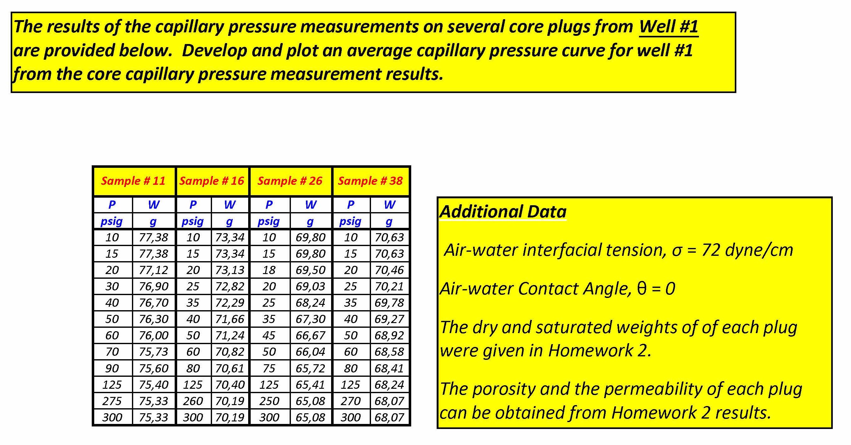 Home Homework Library Engineering Petroleum Engineering The results of the capillary pressure measurements on several core ...