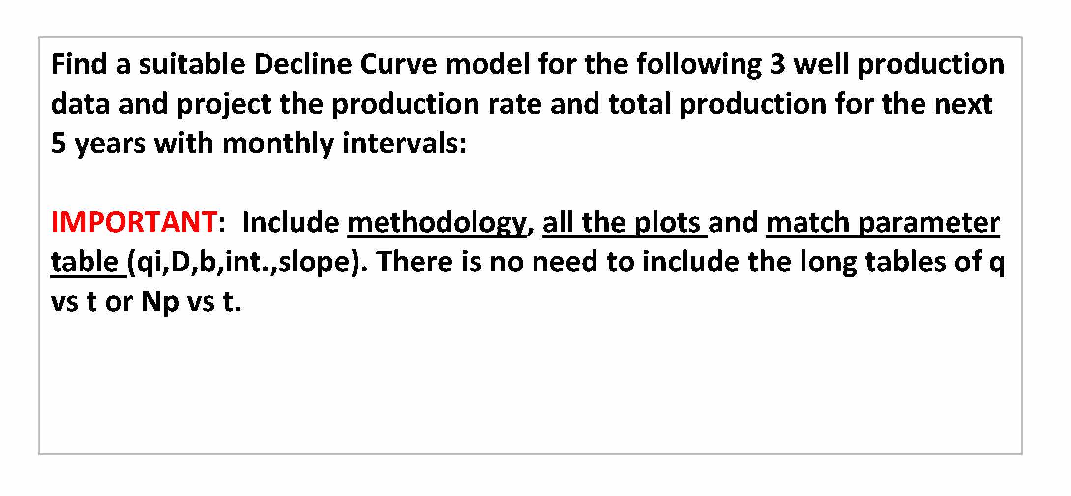 Find a suitable Decline Curve model for the following 3 well produc...