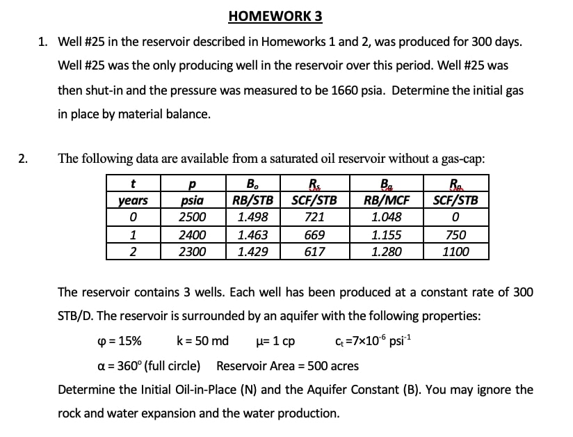 HOMEWORK 3 1. Well #25 in the reservoir described in Homeworks 1 a...