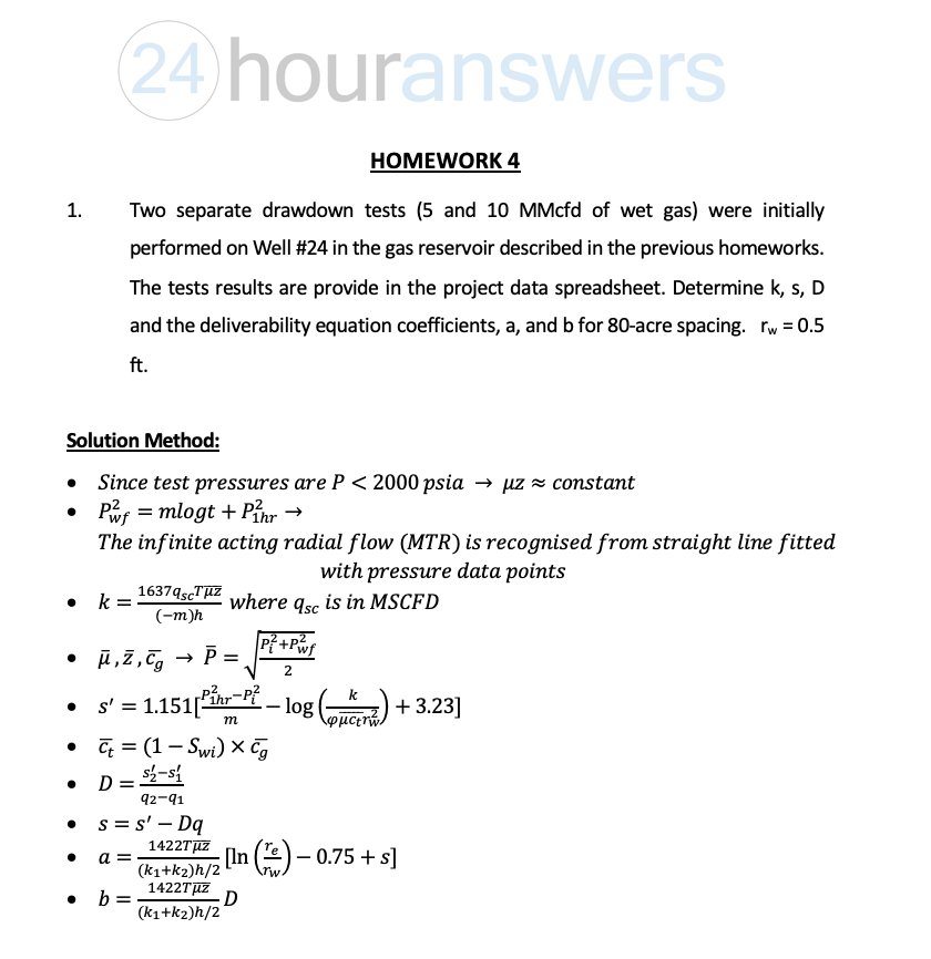 HOMEWORK 4 1. Two separate drawdown tests (5 and 10 MMcfd of wet...