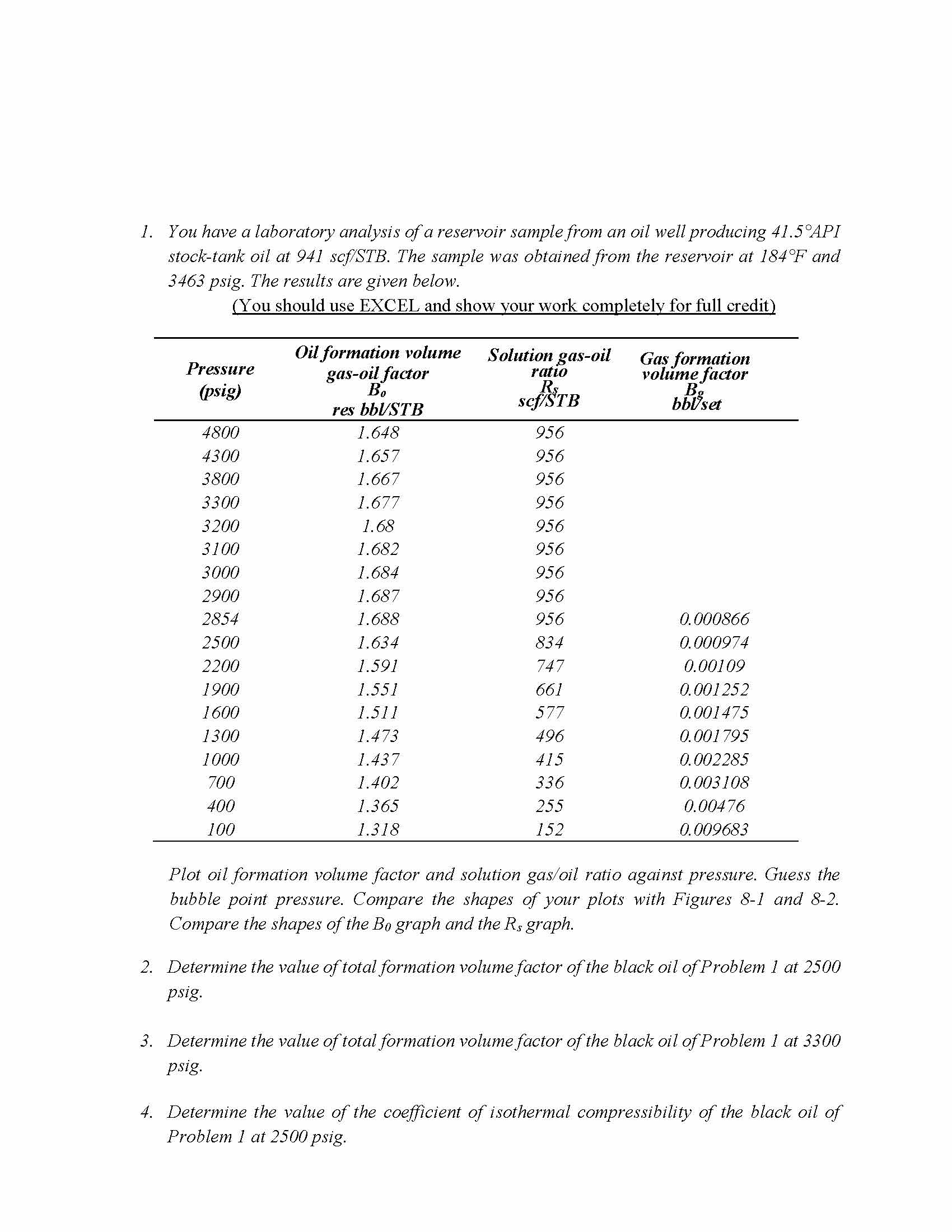 1. You have a laboratory analysis of a reservoir sample from an oil...