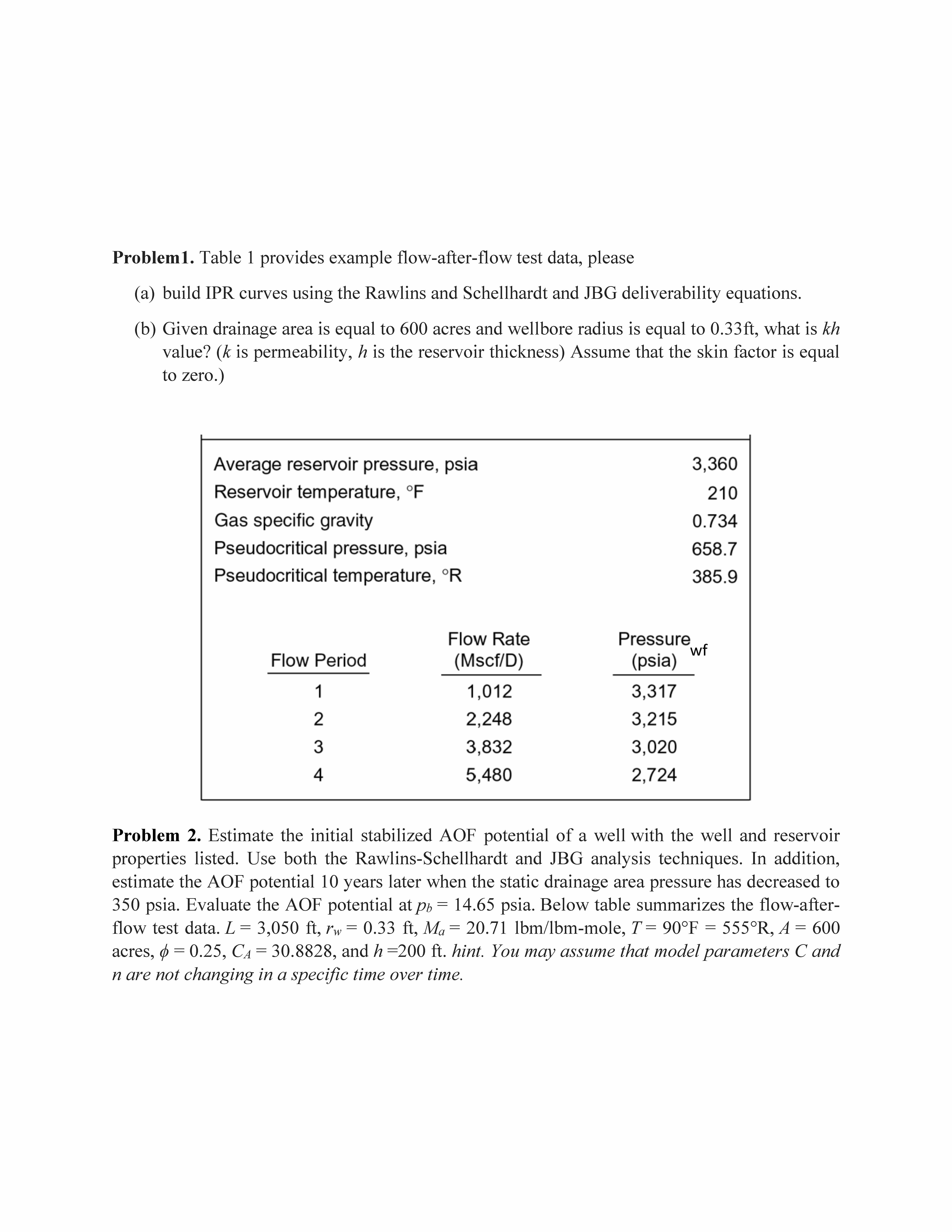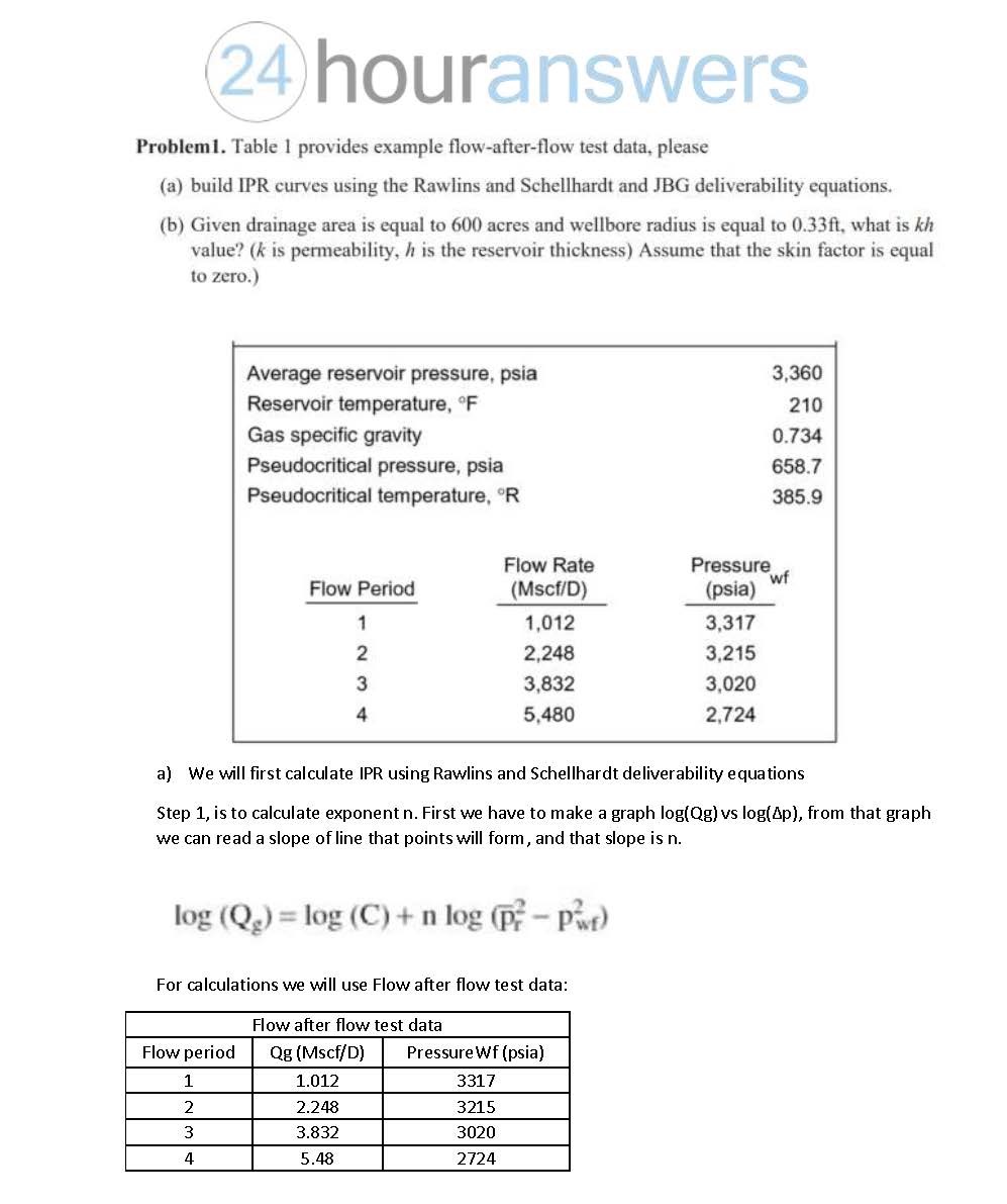 Problem1. Table 1 provides example flow-after-flow test data, pleas...