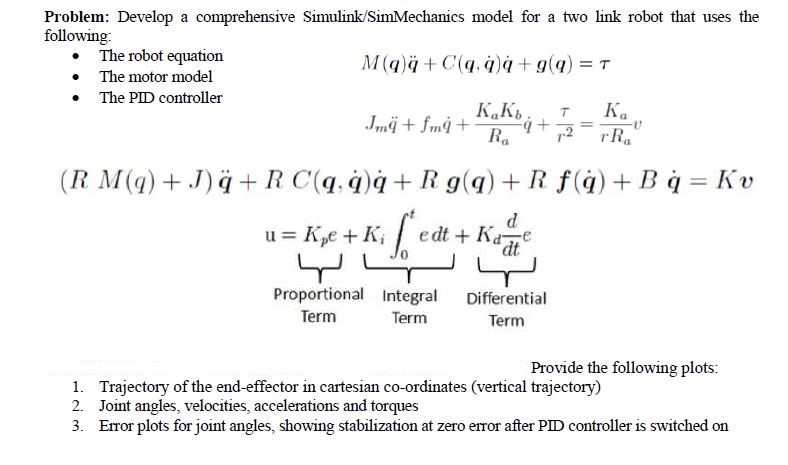 Problem: Develop a comprehensive Simulink/SimMechanics model for a ...