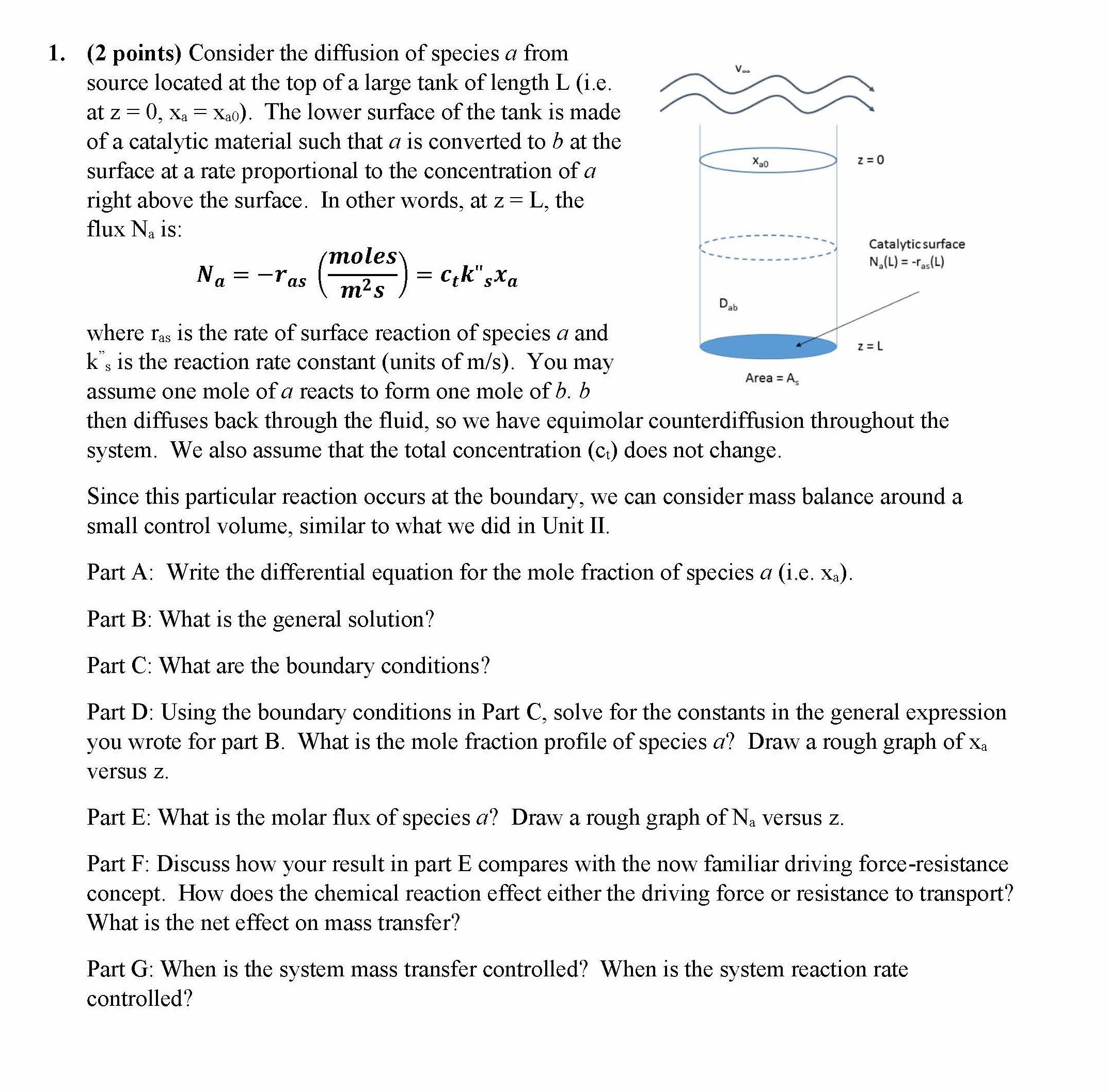1. (2 points) Consider the diffusion of species a from source loca...