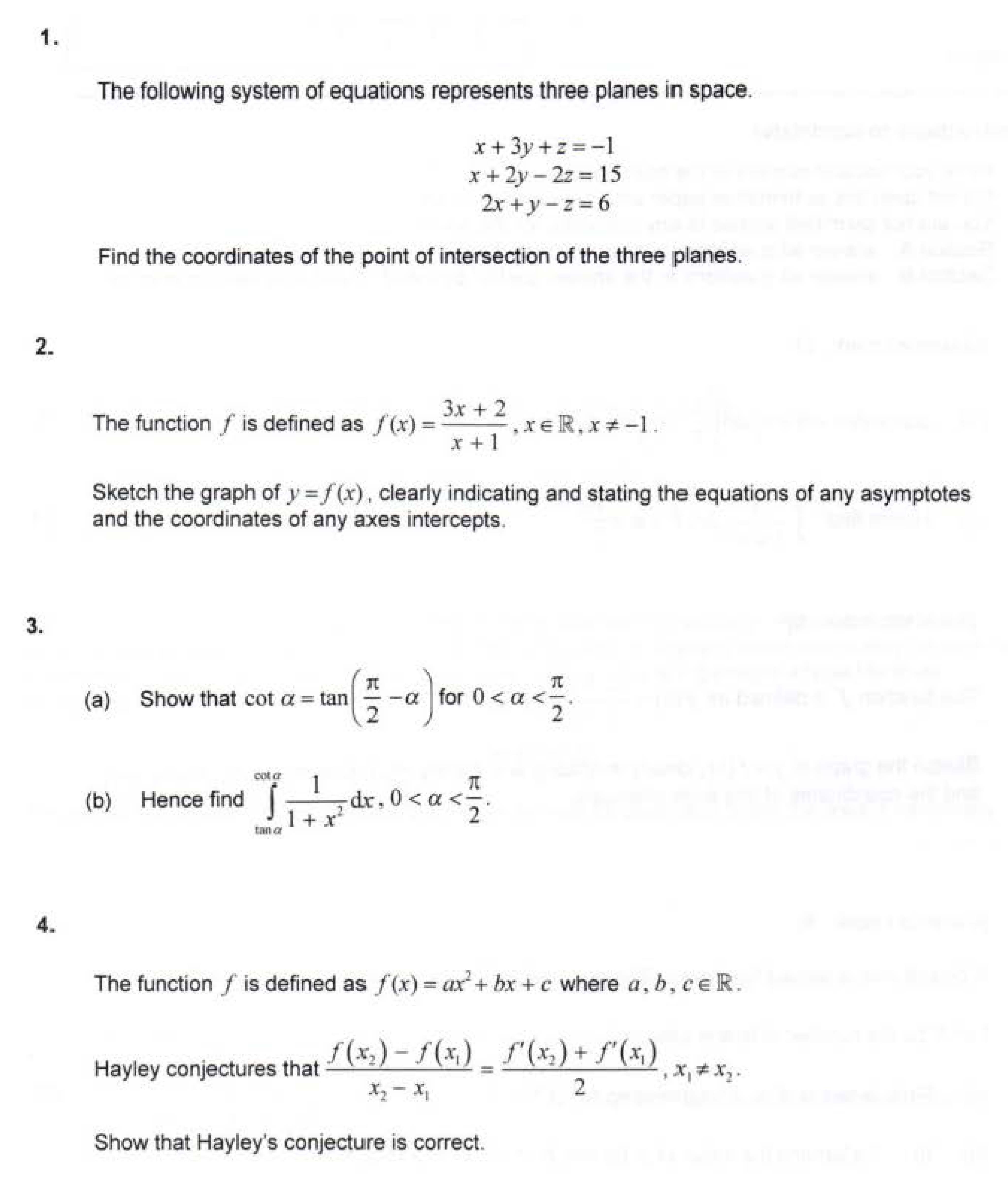 1. 2. 3. 4. The following system of equations represents three ...