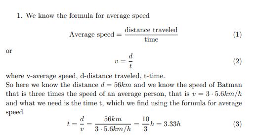 1) Batman ran out of gas on the Turnpike. He is 56km from the rest...