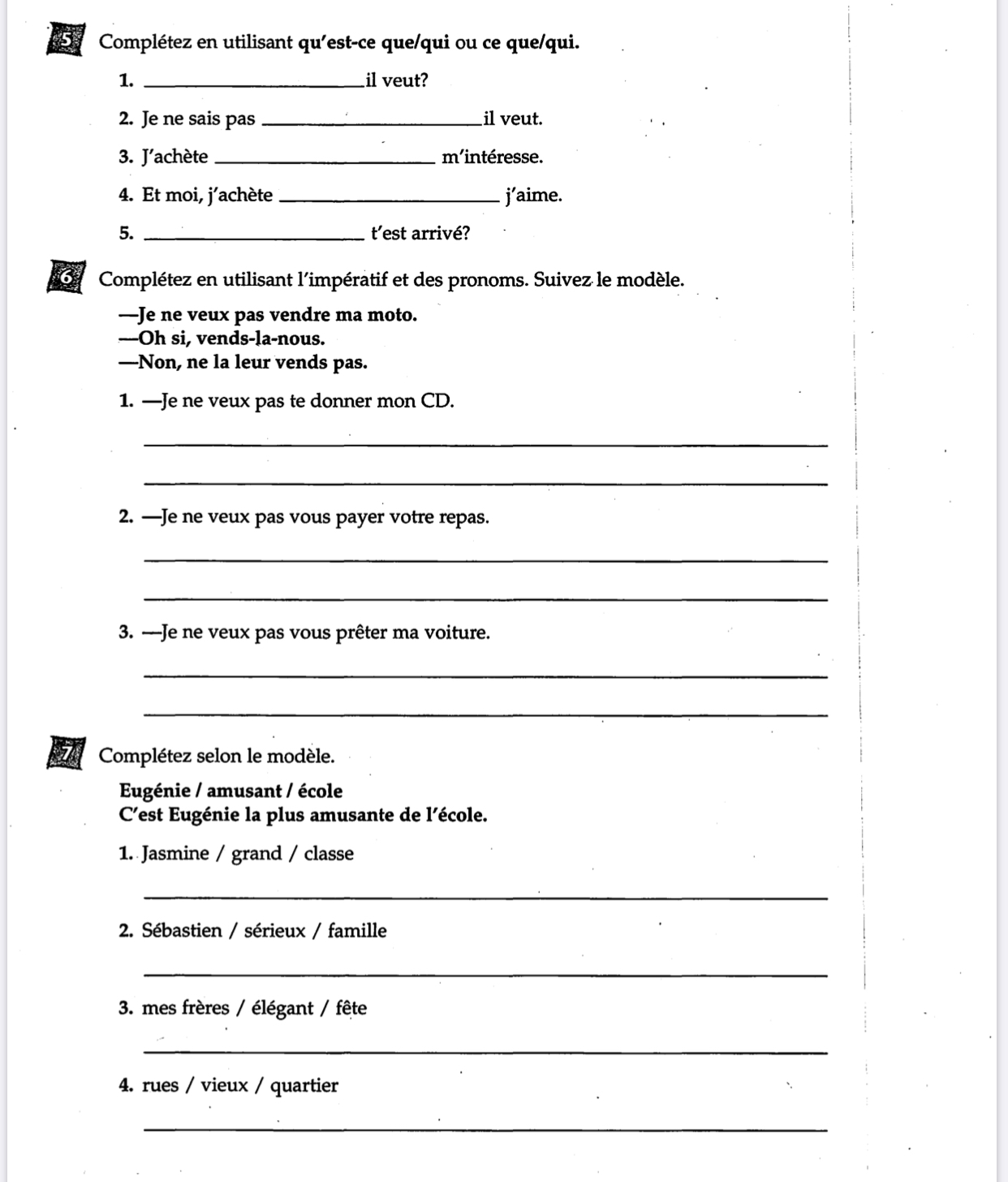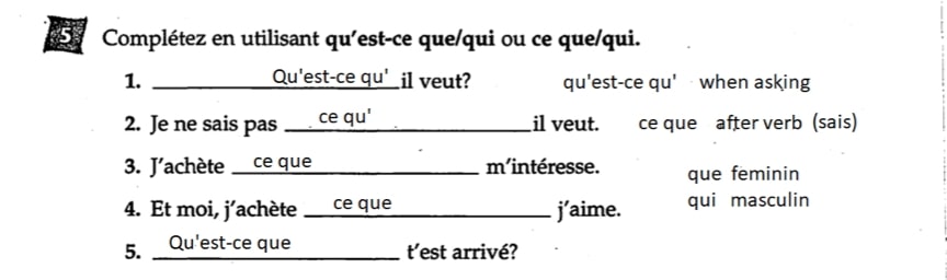 Complétez en utilisant qu'est-ce que/qui ou ce que/qui. 1. il ...