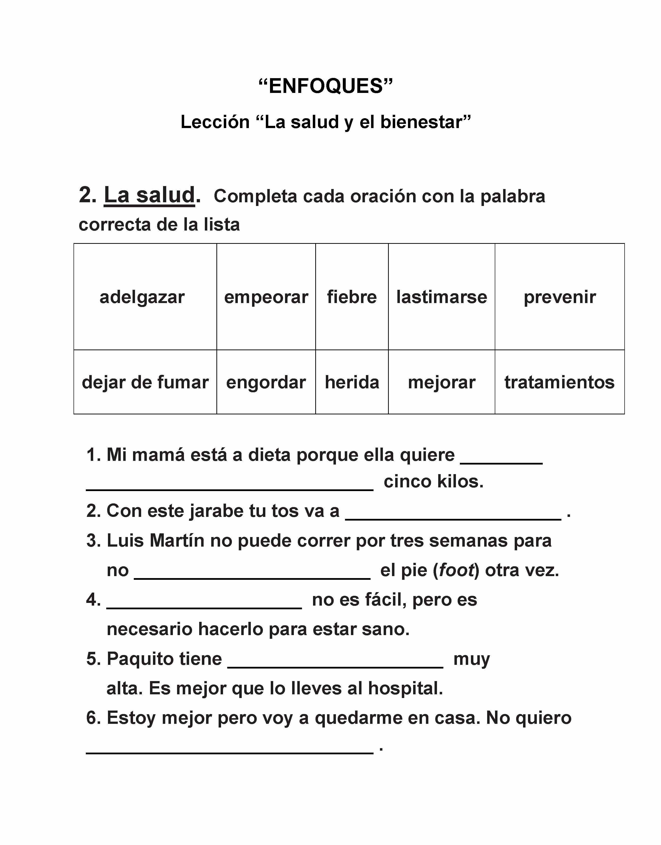 "ENFOQUES" Lección" "La salud el bienestar&qu...