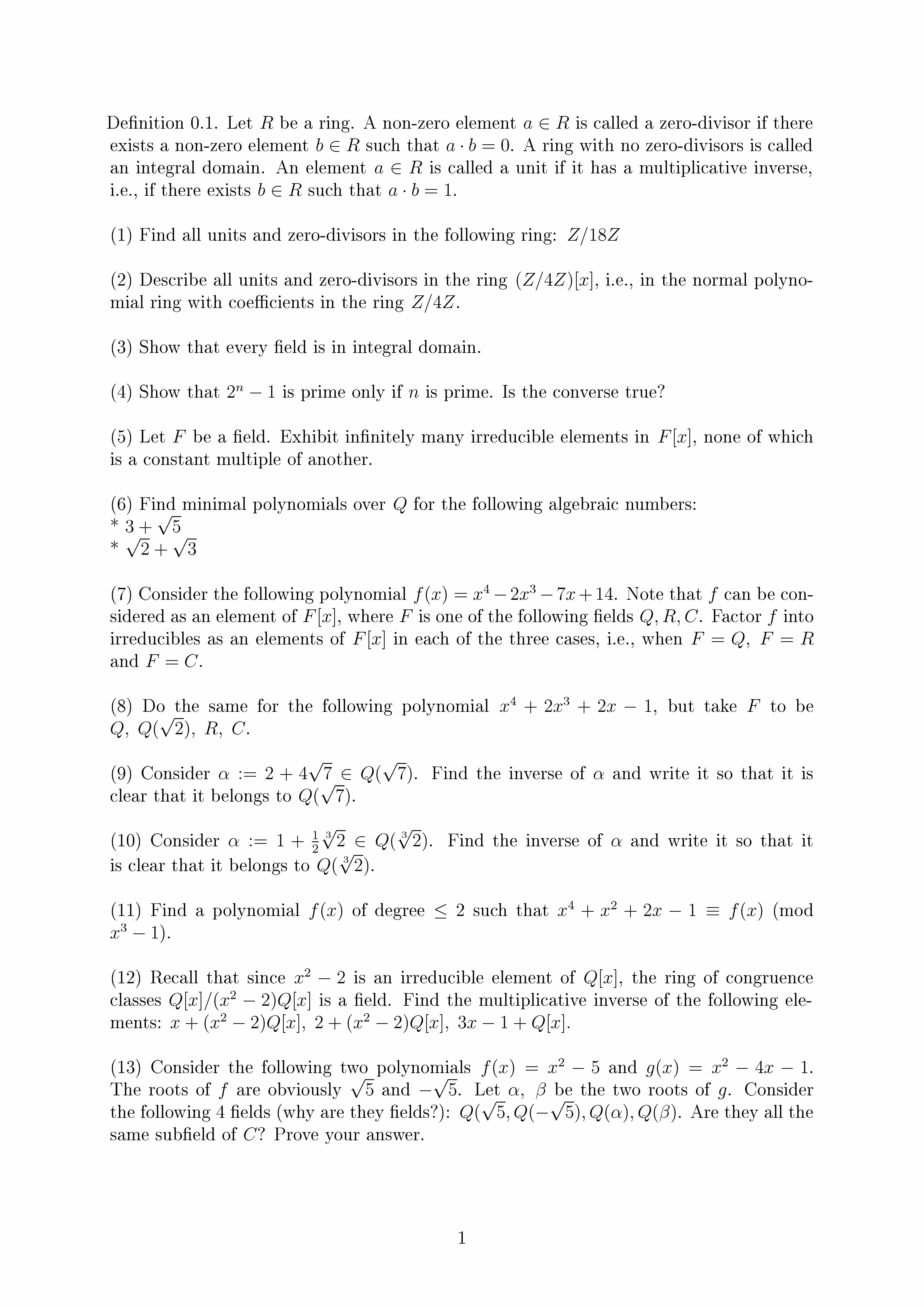 Denition 0.1. Let R be a ring. A non-zero element a 2 R is called ...