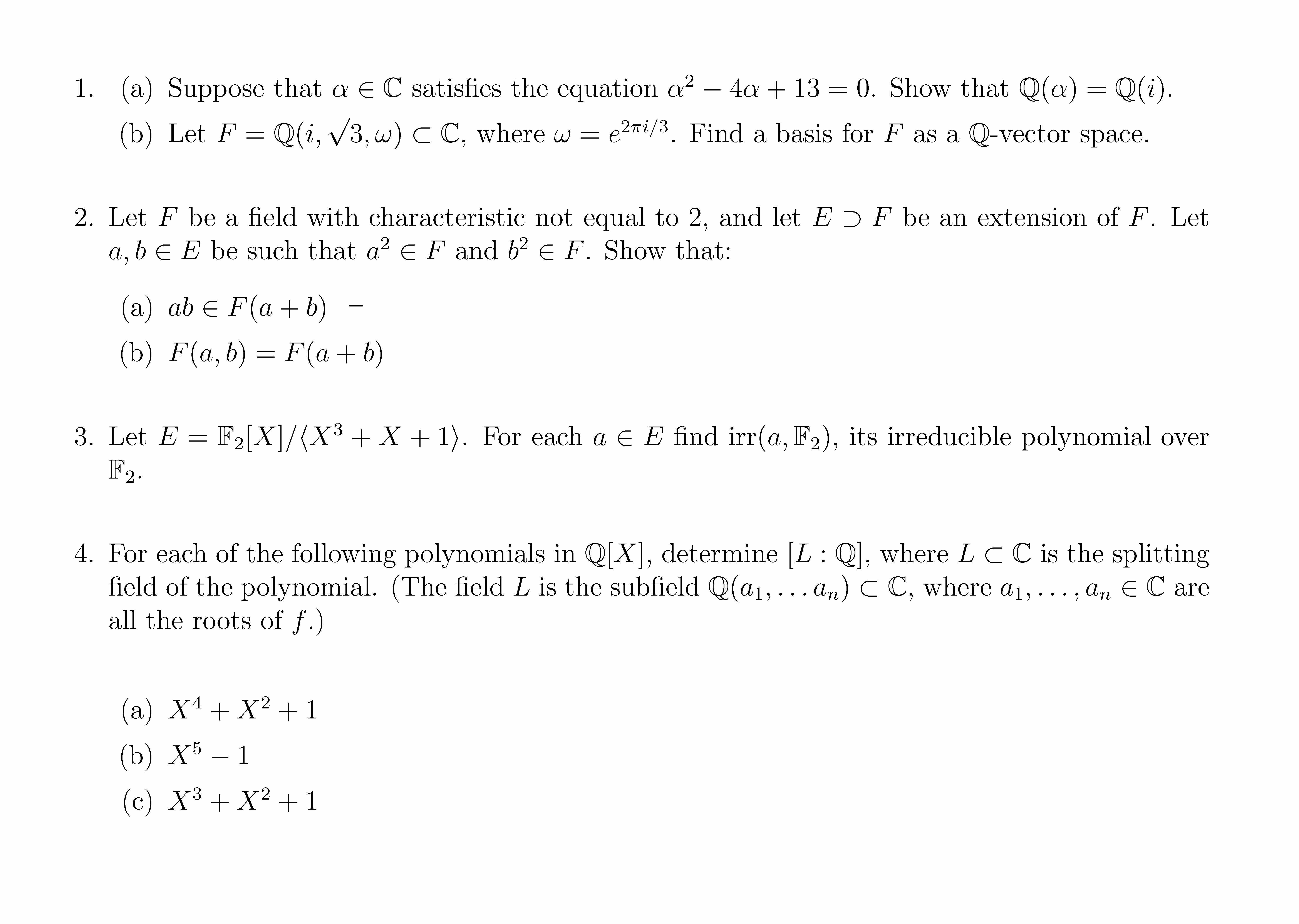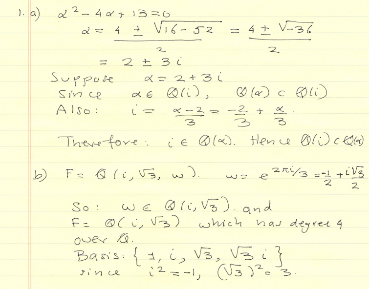 1. (a) Suppose that α ∈ C satisfies the equation α 2 â...