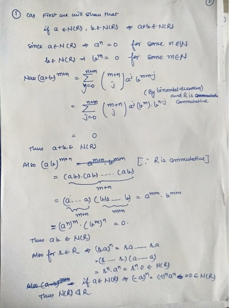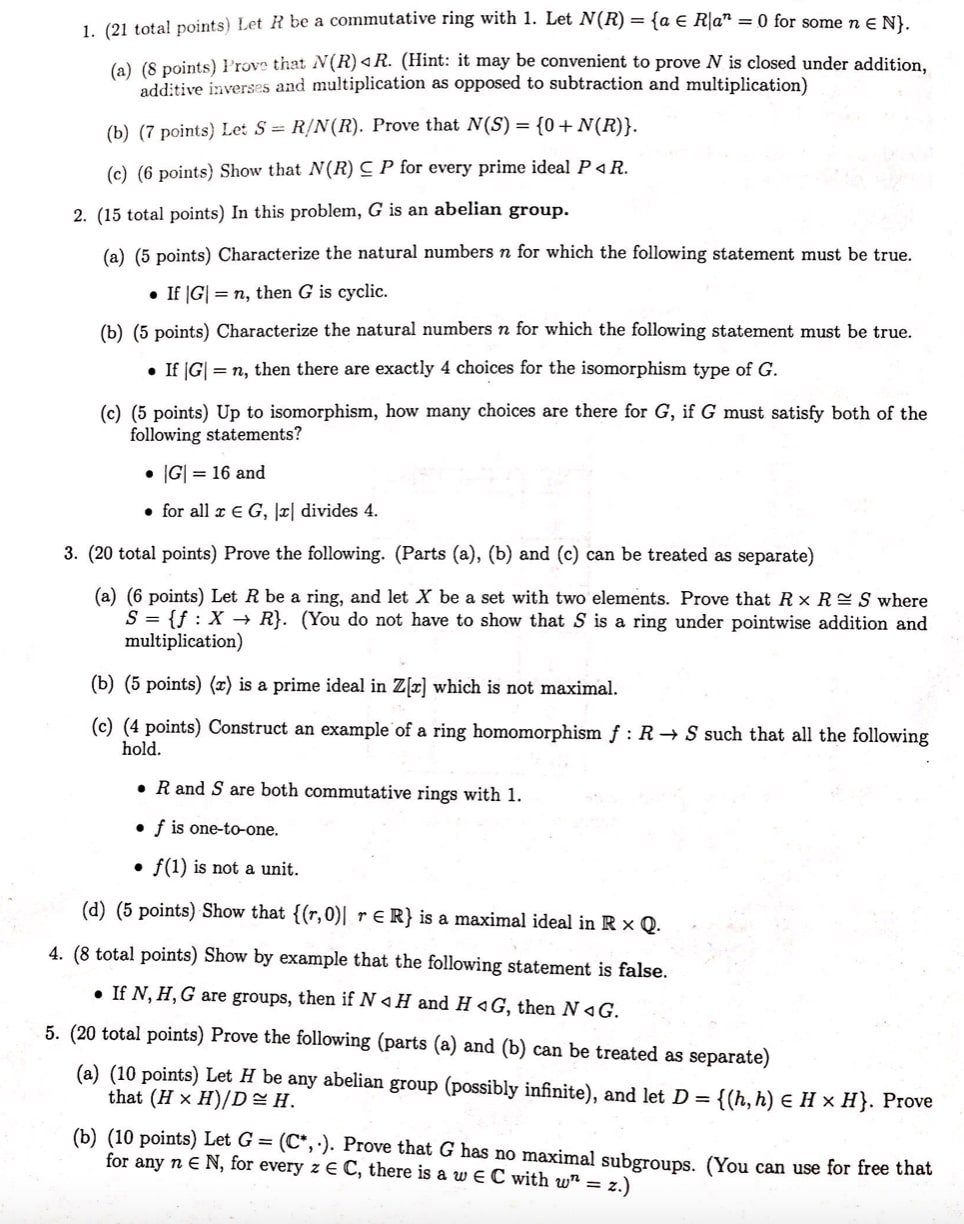 1. (21 total points) Let R be a commutative ring with 1. Let N(R) =...