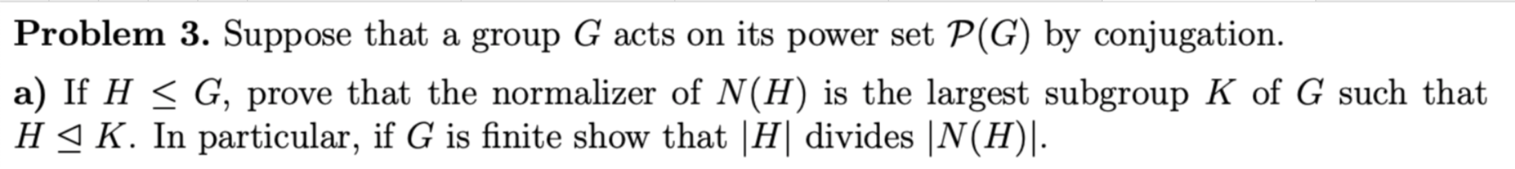 Problem 3. Suppose that a group G acts on its power set P(G) by co...