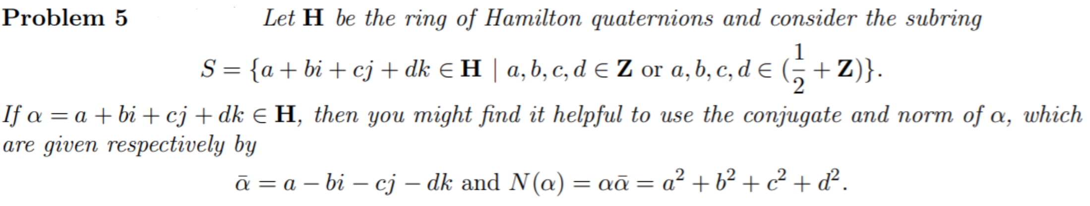 Problem 5 Let H be the ring of Hamilton quaternions and consider t...