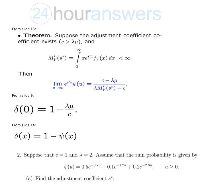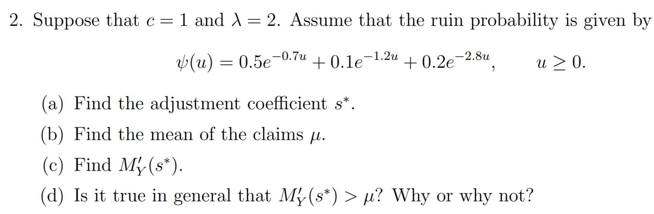 2. Suppose that C= 1 and l = 2. Assume that the ruin probability is...