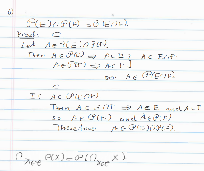 Exercise 1. Prove that P(E) ∩ P(F) = P(E ∩ F) and P(E) U ...