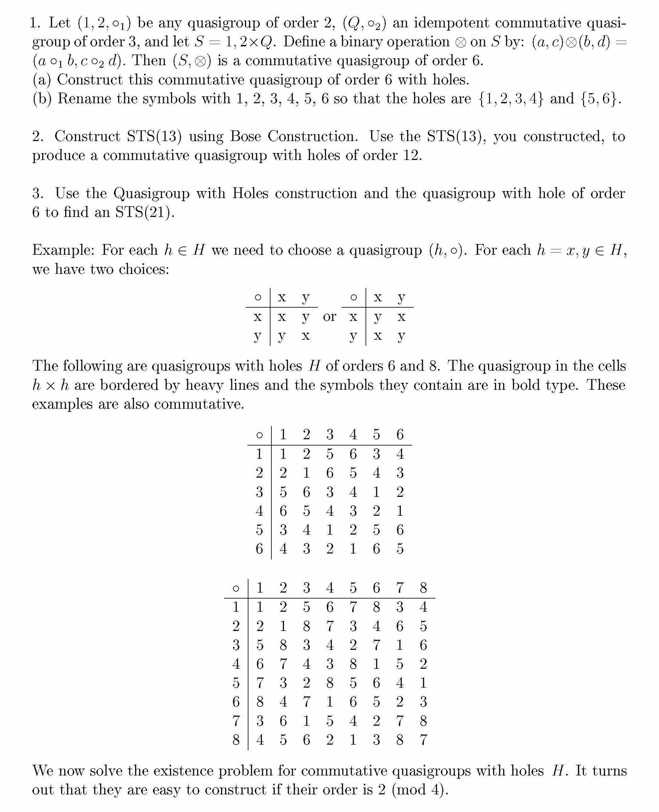 1. Let (1; 2; 1) be any quasigroup of order 2, (Q; 2) an idempote...