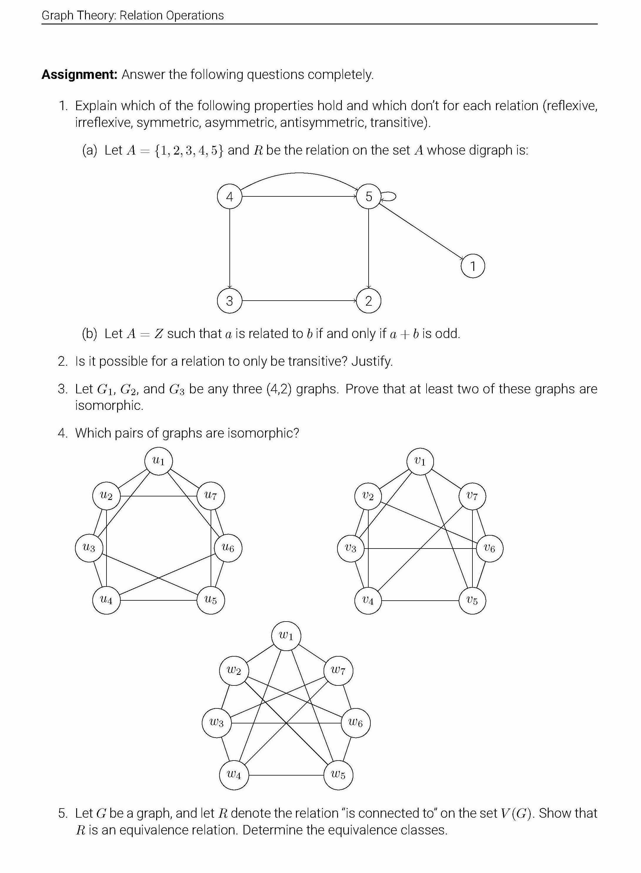 Graph Theory: Relation Operations Assignment: Answer the following...
