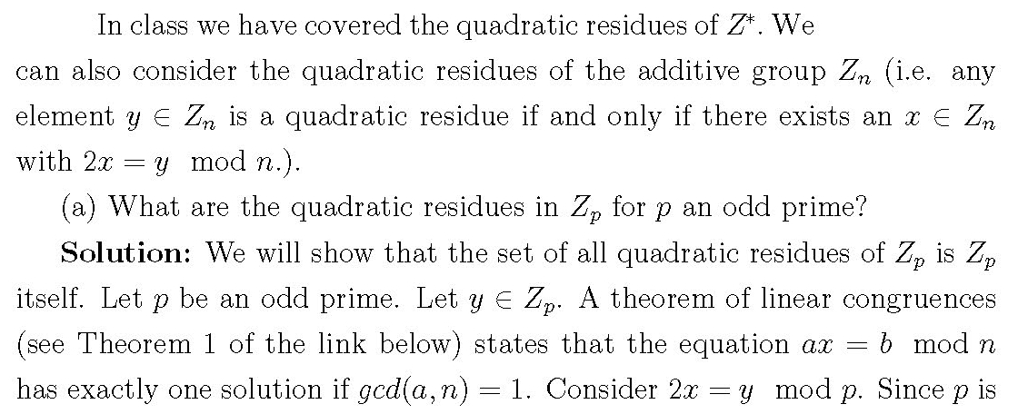 Quadratic residues of Z ∗. We can also consider the quadrat...