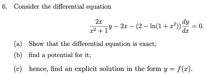 6. Consider the differential equation 2x y - 2x - (2 - In(1 + x2)...