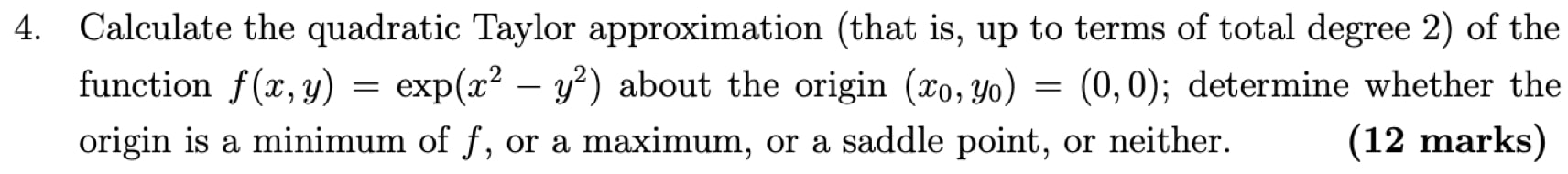 4. Calculate the quadratic Taylor approximation (that is, up to ter...