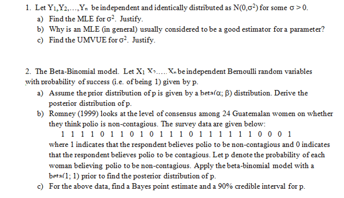 1. Let Y1,Y2, Yn be independent and identically distributed as N(0,...