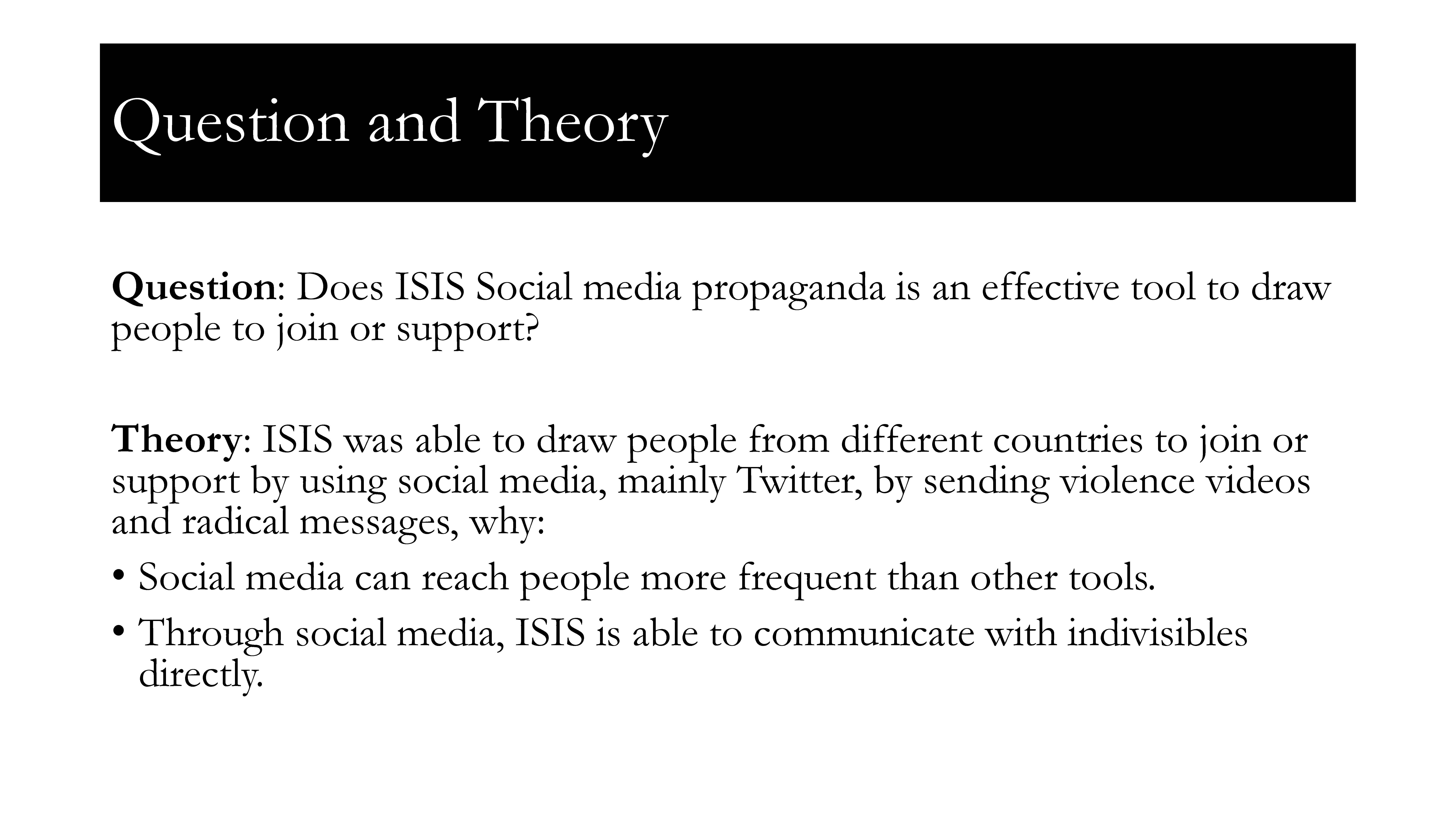 Question: Does ISIS Social media propaganda is an effective tool to...