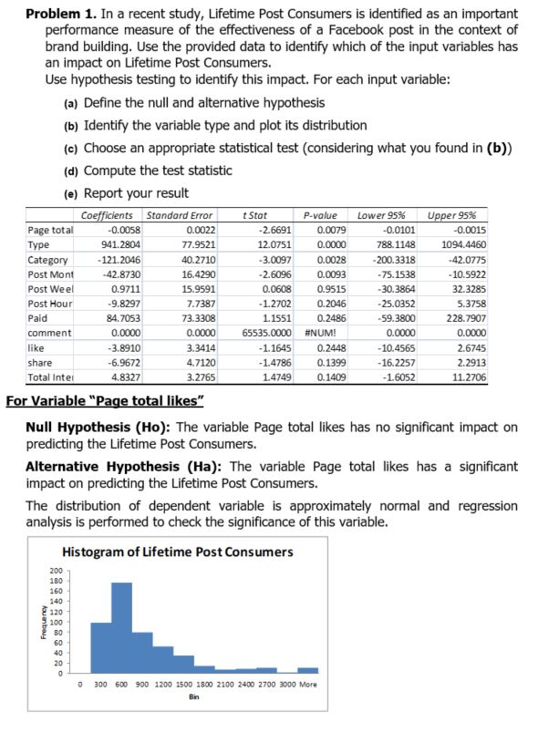 Problem 1. In a recent study, Lifetime Post Consumers is identified...