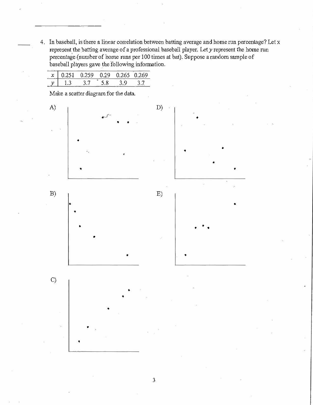 4. In baseball, is there a linear correlation between batting avera...