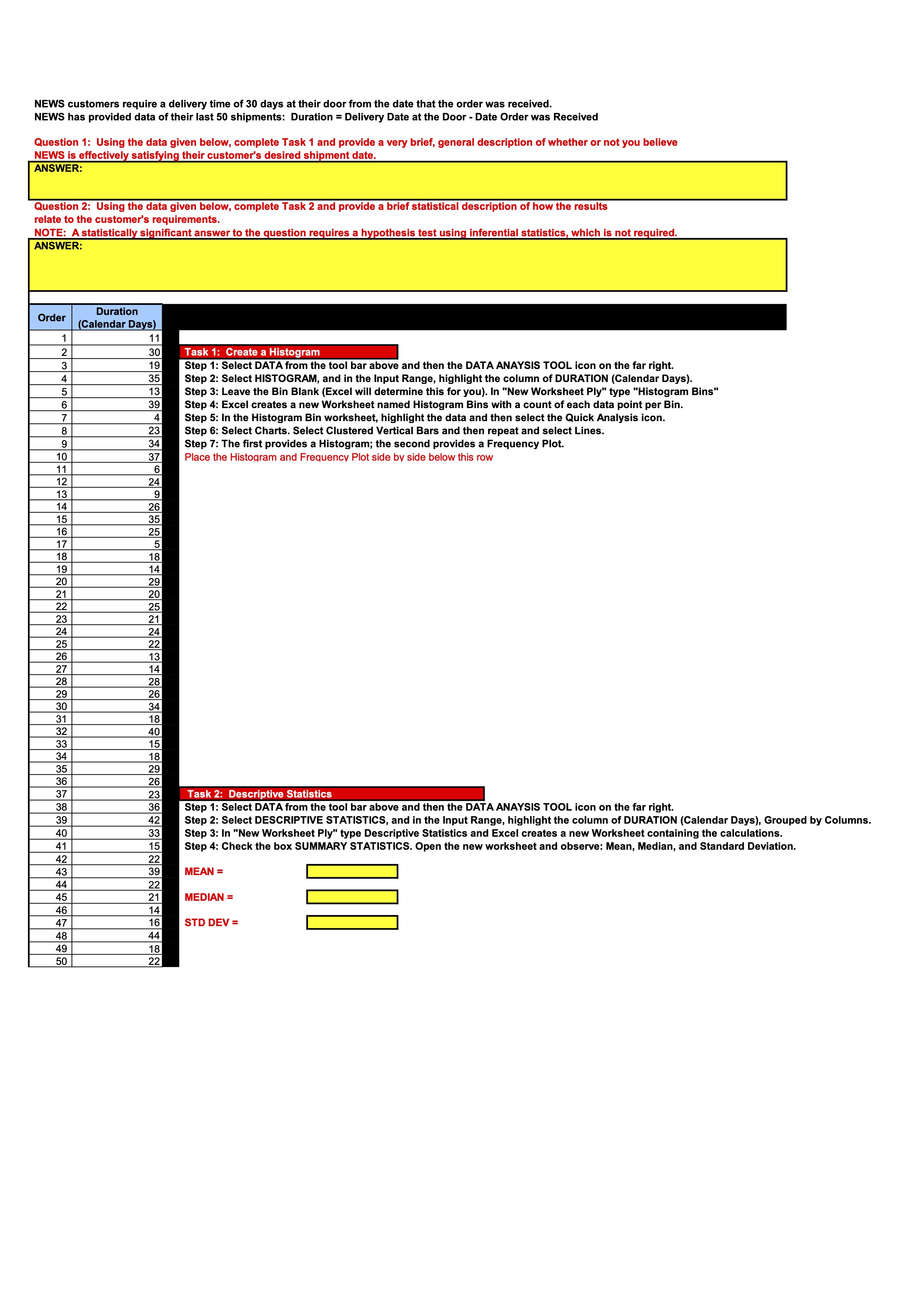NEWS customers require a delivery tilme of 30 days at thair door fr...
