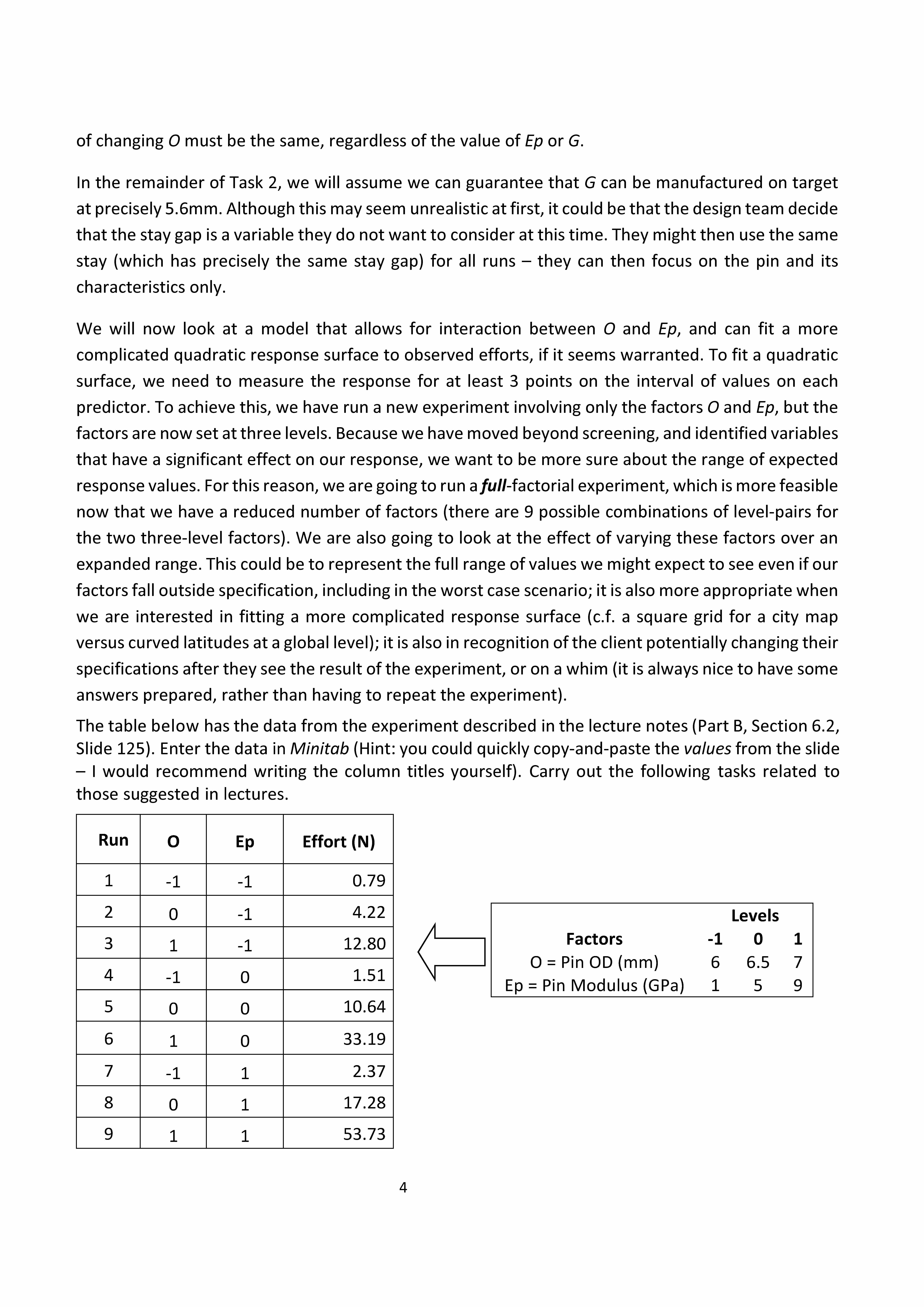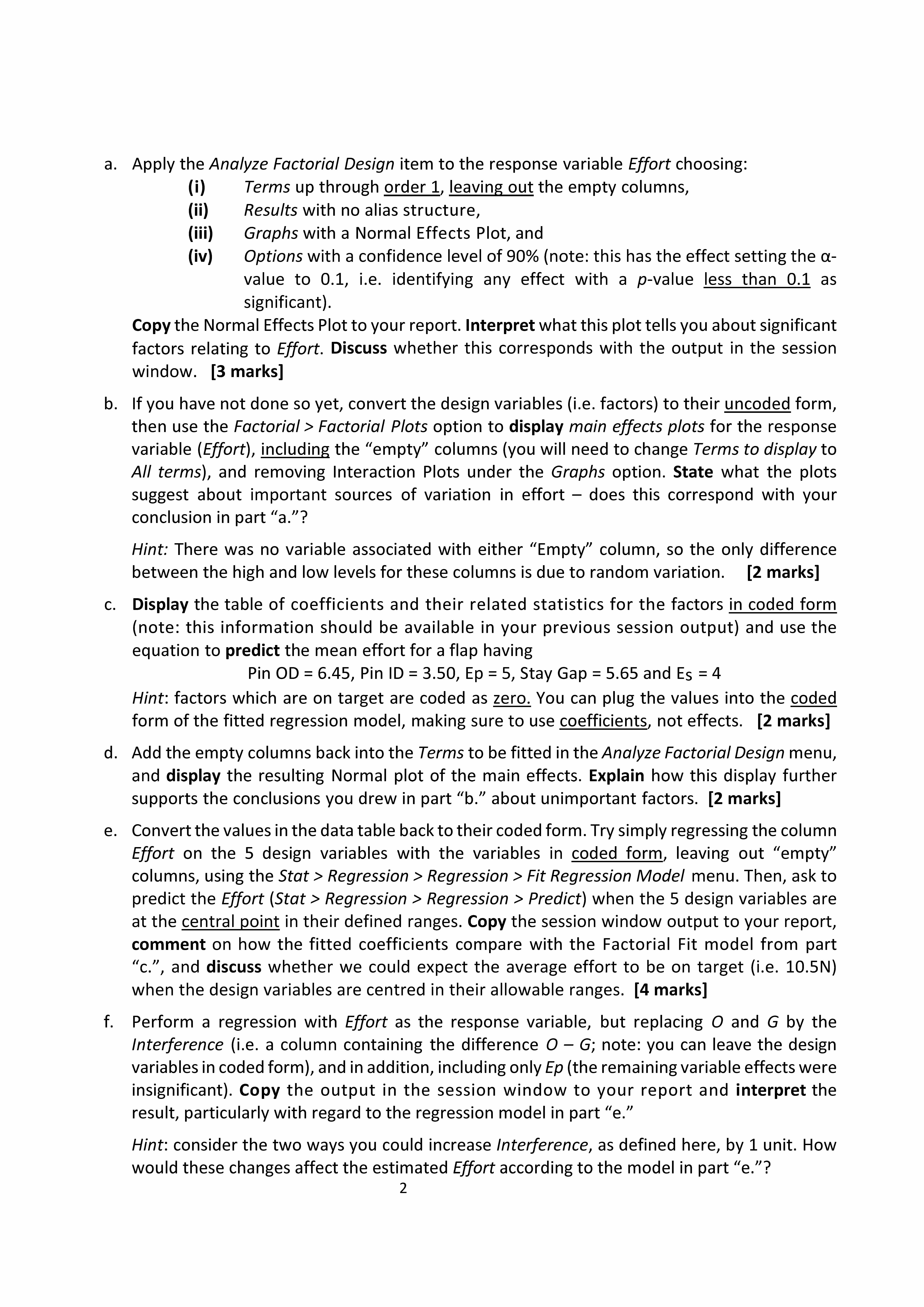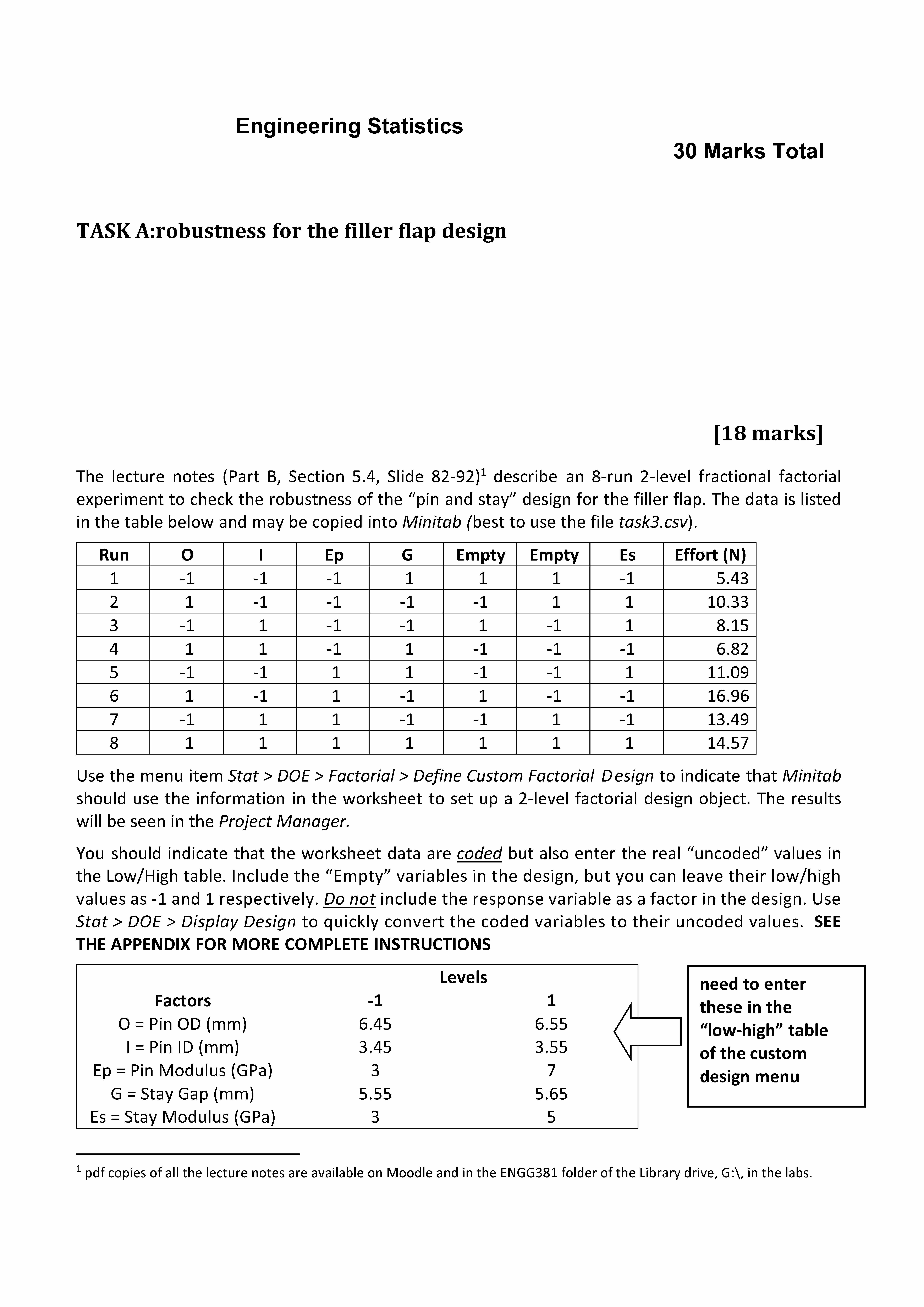 Engineering Statistics TASK A:robustness for the filler flap desig...