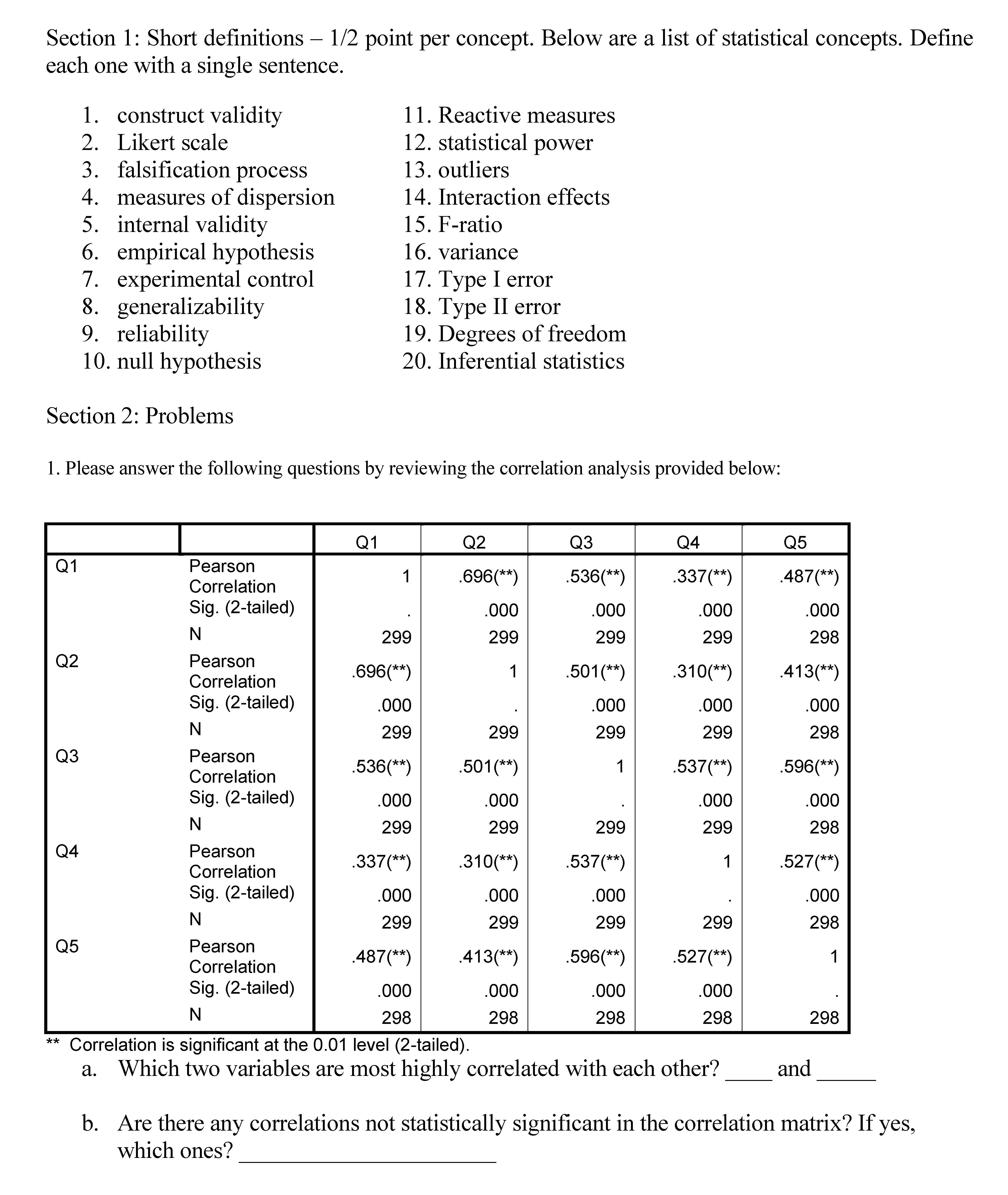 Section 1: Short definitions – 1/2 point per concept. Below ...