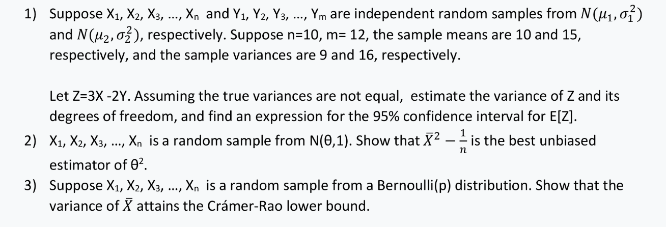 1) Suppose X1, X2, X3, Xn and Y1, Y2, Y3, Ym are independent random...