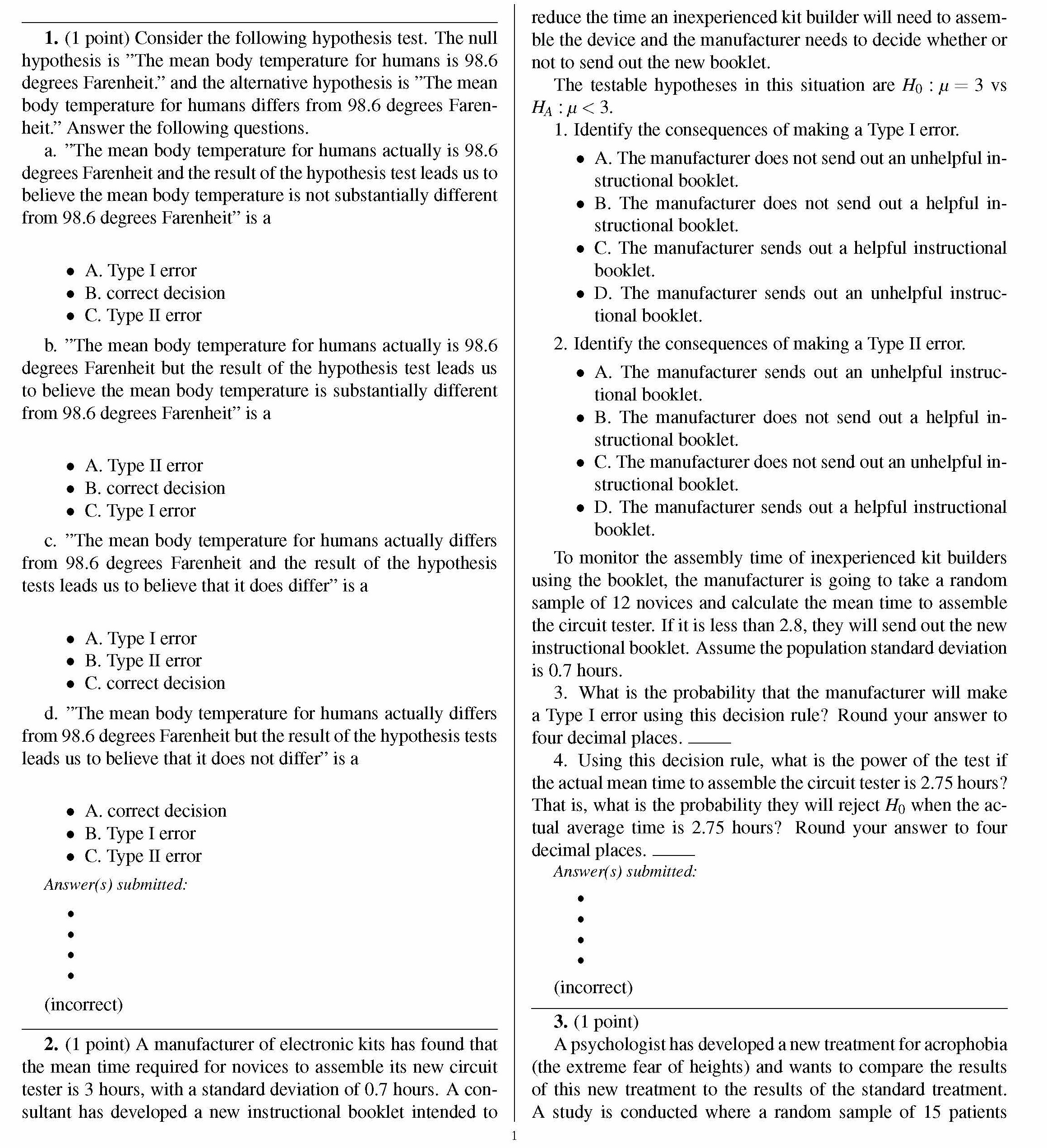 1. (1 point) Consider the following hypothesis test. The null hypo...