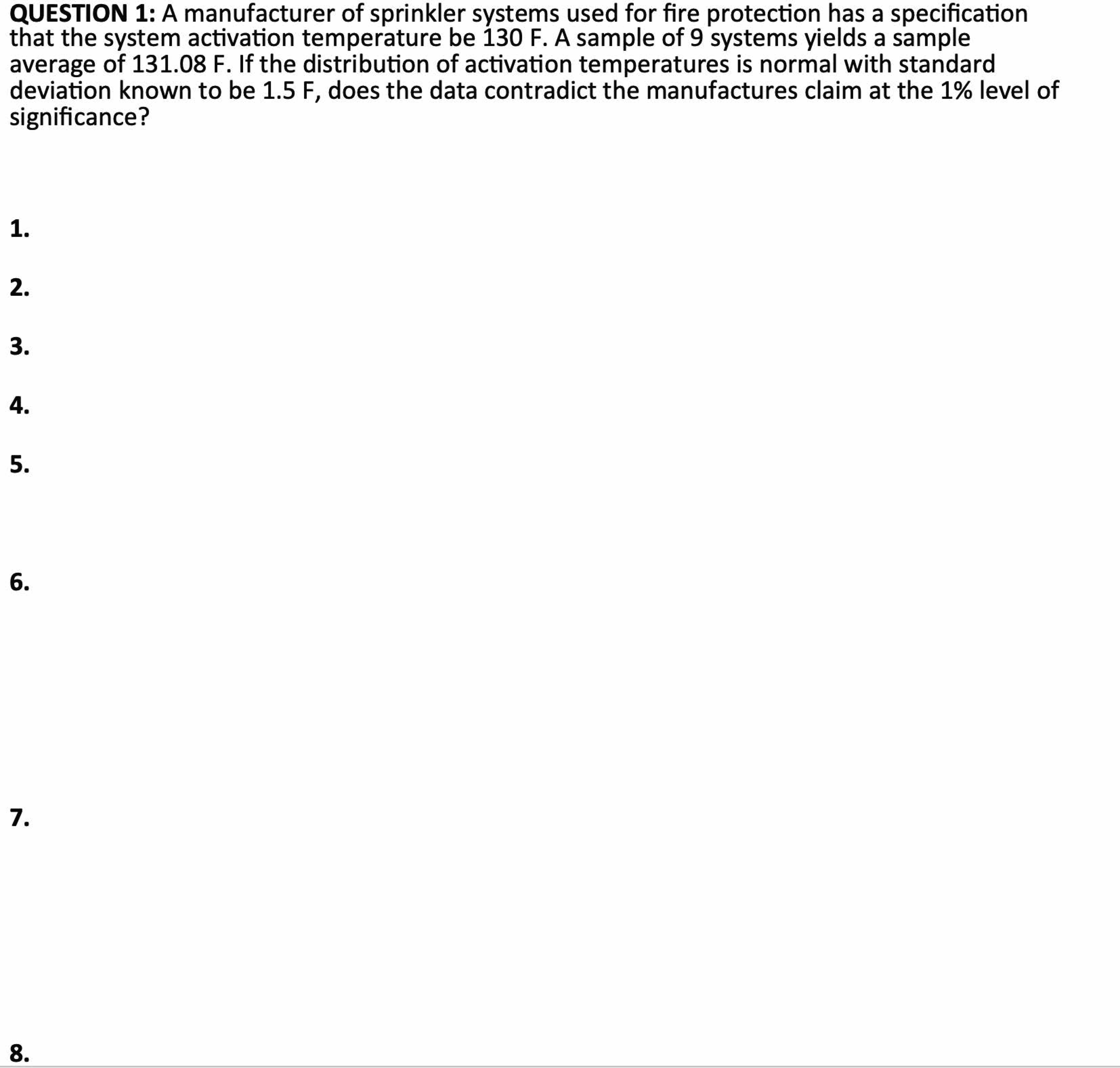 QUESTION 1: A manufacturer of sprinkler systems used for fire prote...
