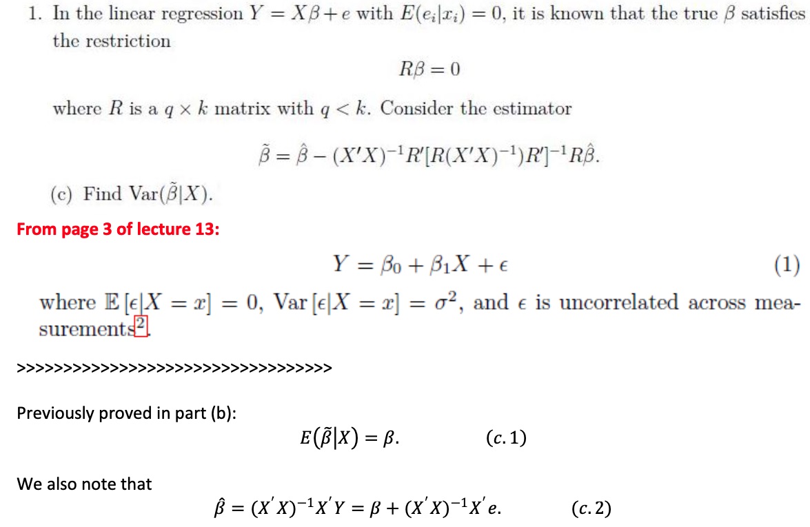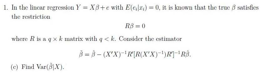 1. In the linear regression Y = XB+e with E(eilzi) = 0, it is known...