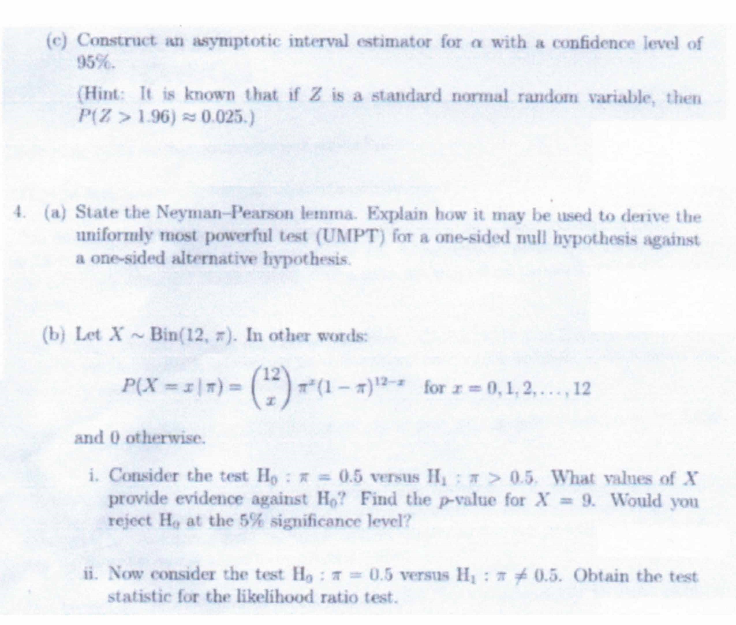 (c) Construct an asymptotic interval estimator for o with a confide...