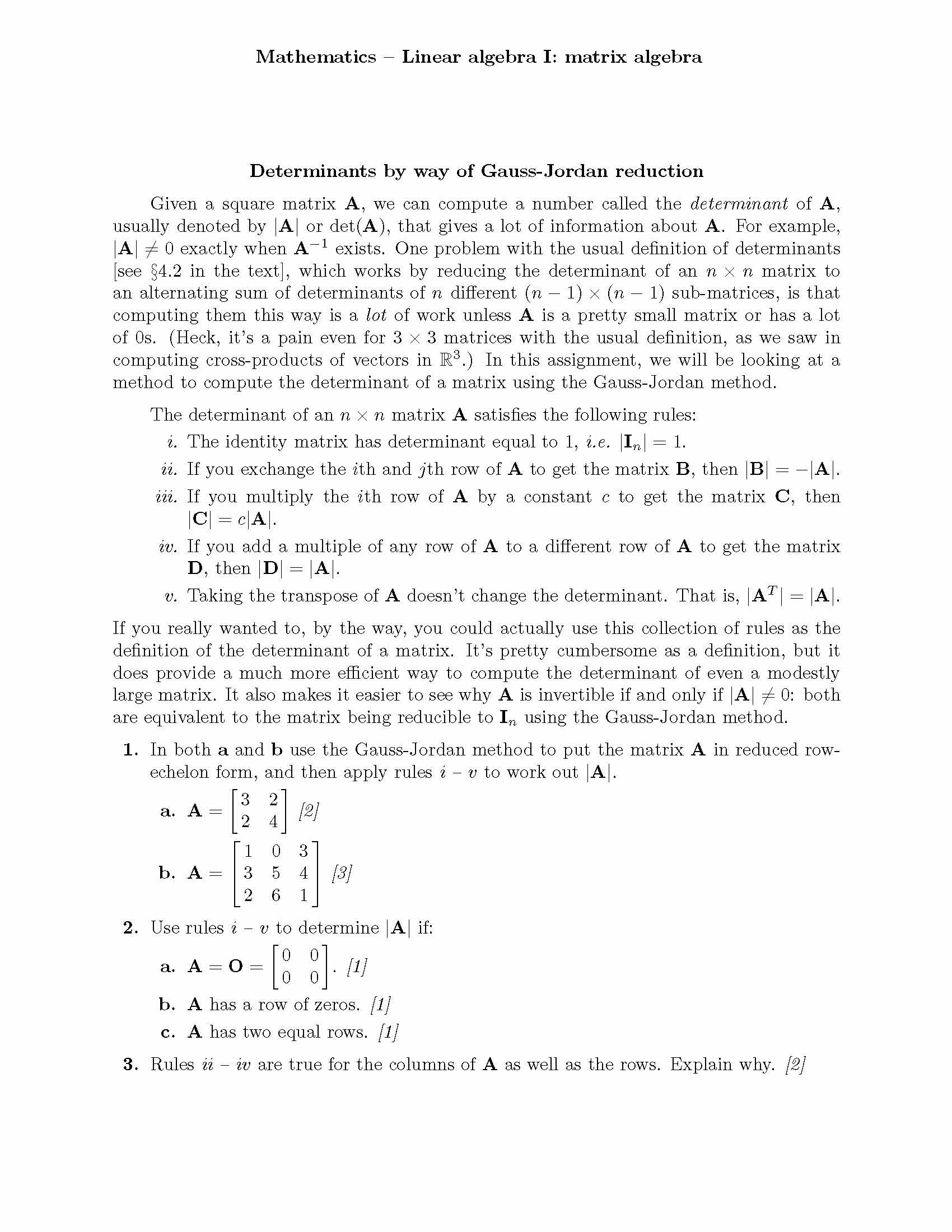 Mathematics – Linear algebra I: matrix algebra Determinants by w...