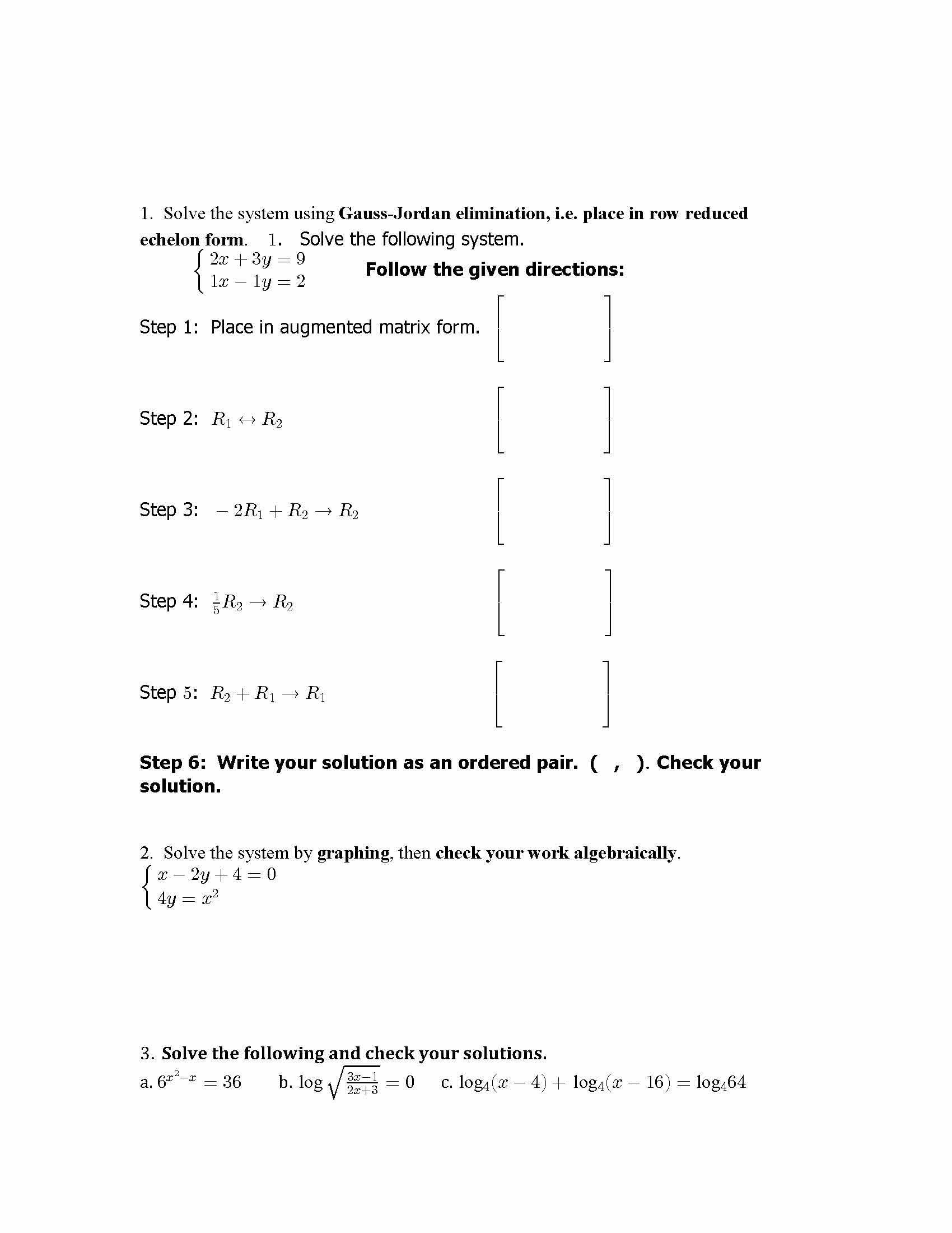 1. Solve the system using Gauss-Jordan elimination, i.e. place in r...