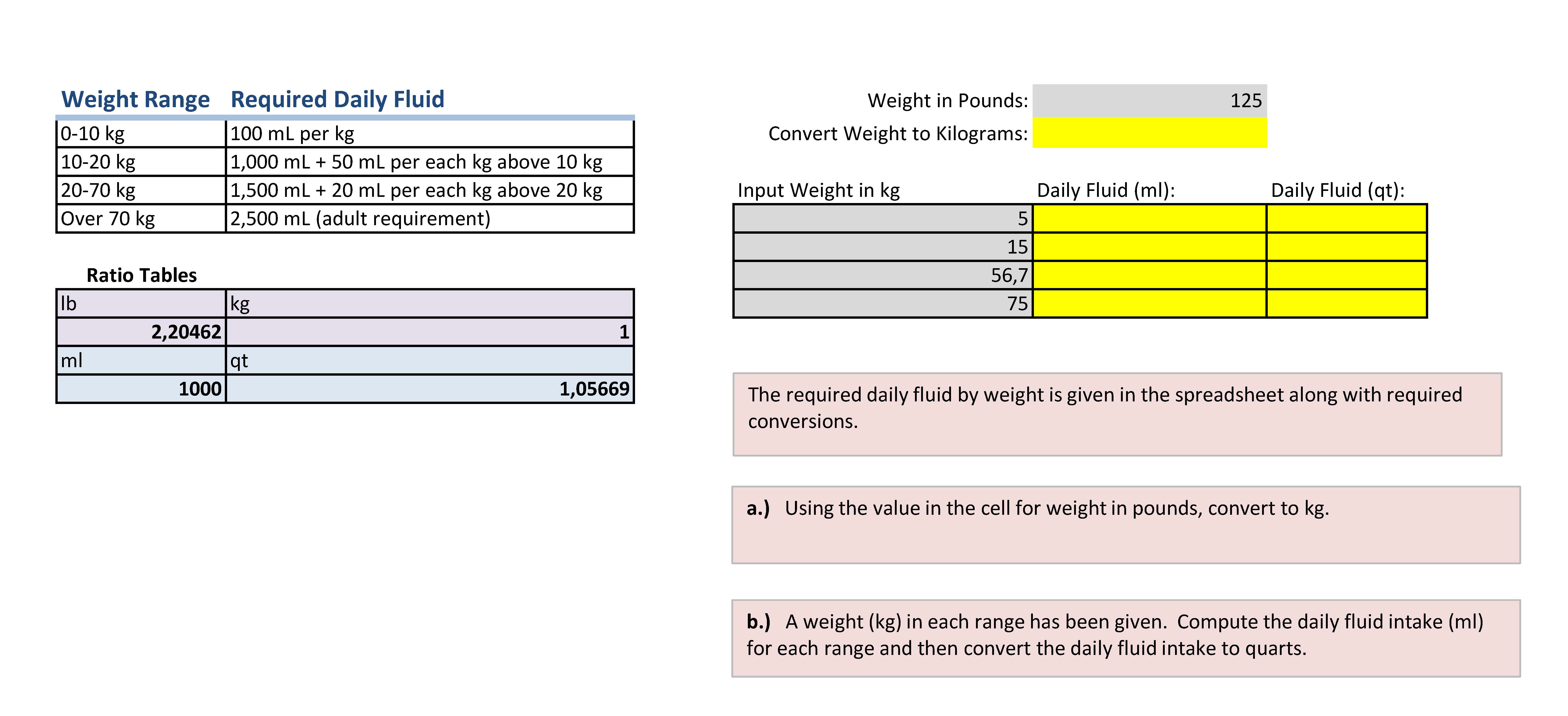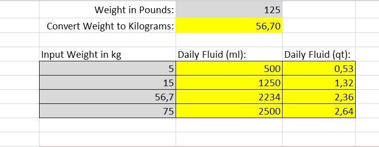 Weight Range Required Daily Fluid Weight in Pounds: 125 0-10 kg...
