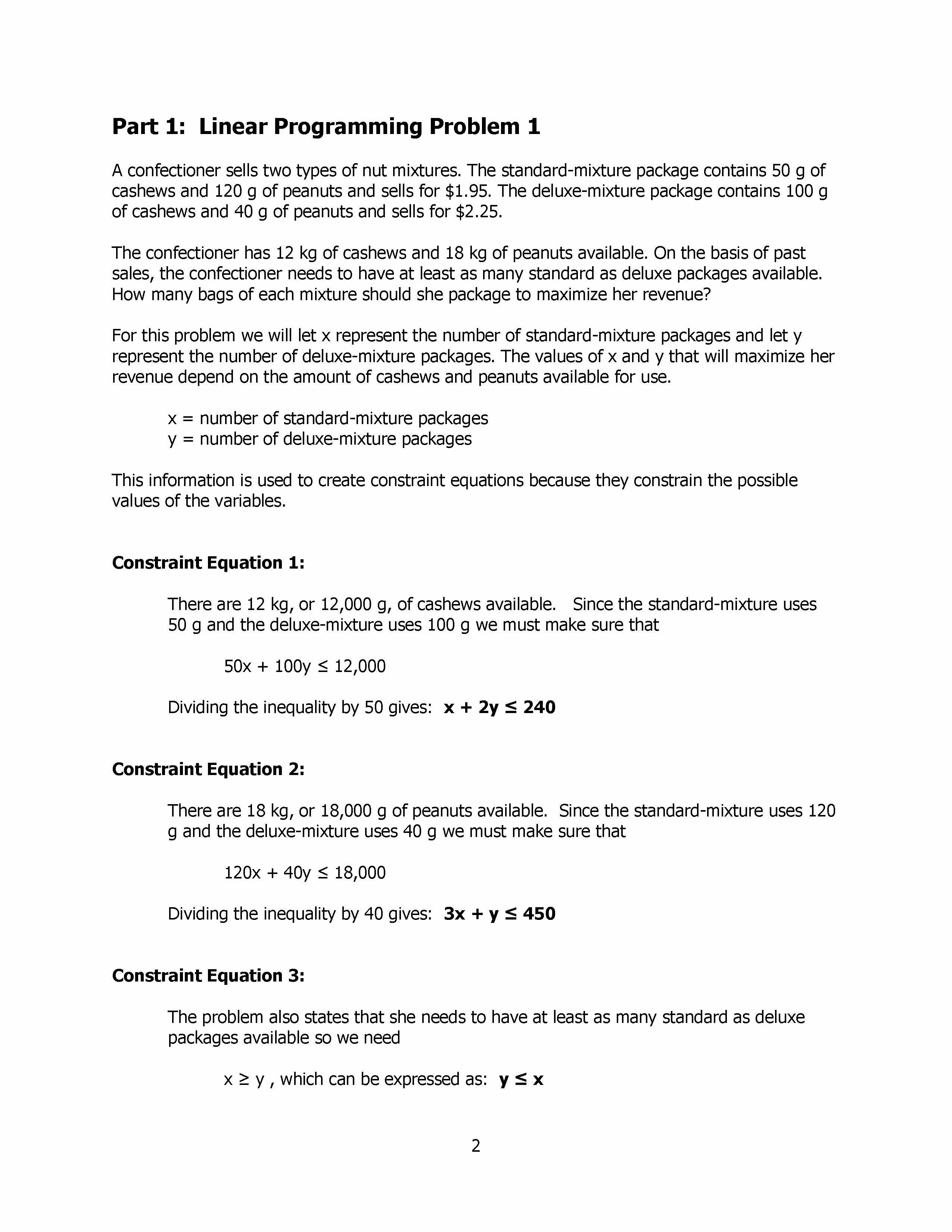 Part 1: Linear Programming Problem 1 A confectioner sells two type...