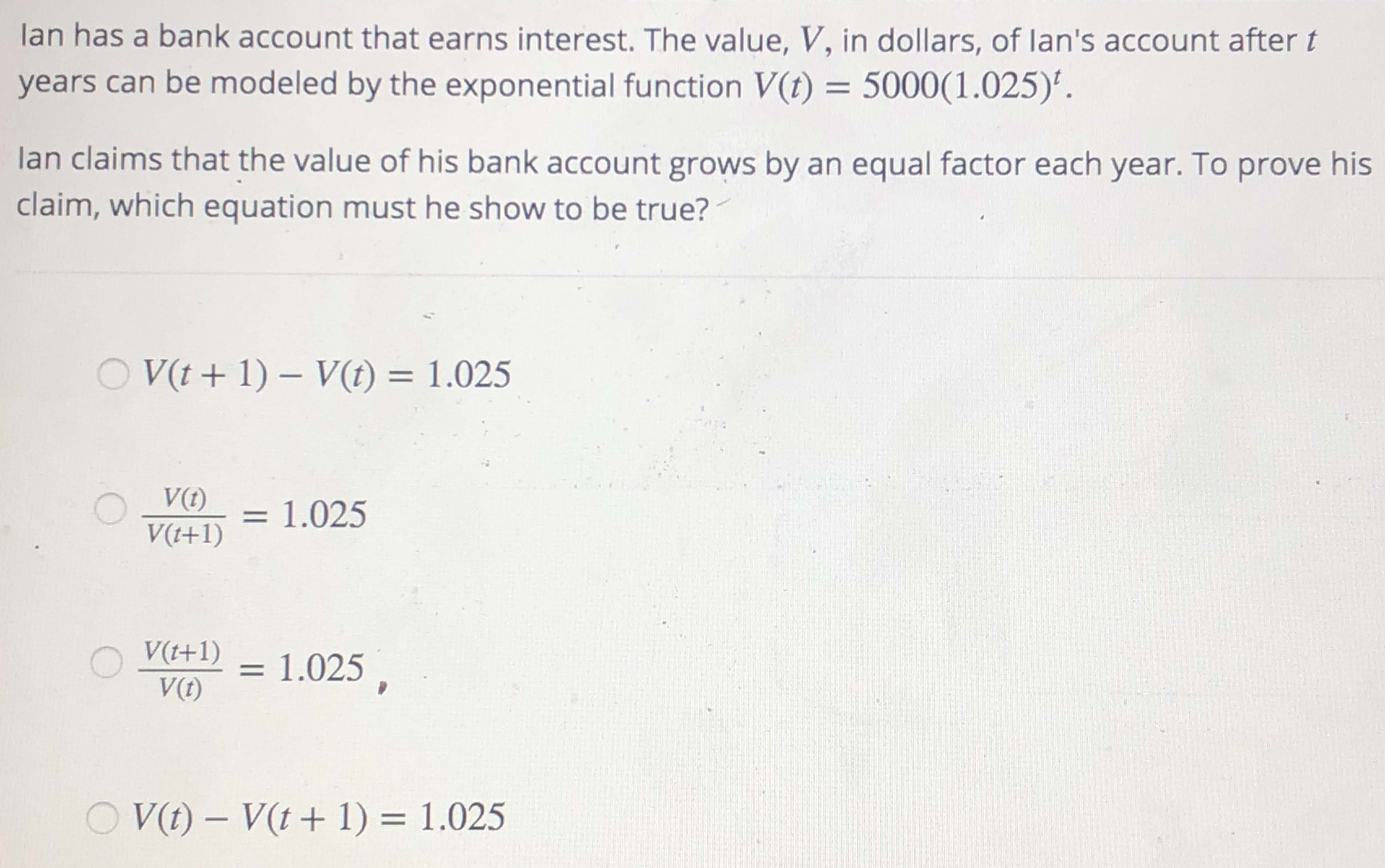 an has a bank account that earns interest. The value, V, in dollars...
